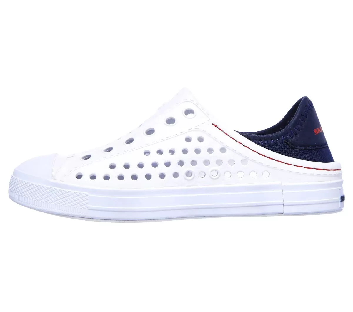 En favorit i varmt vejr bliver endnu mere behagelig. Skechers Foamies®: Guzman Steps – Aqua Surge er lavet med fleksibelt Nano Lite blødt plastikskum og blødt stof for nem rengøring og pleje.