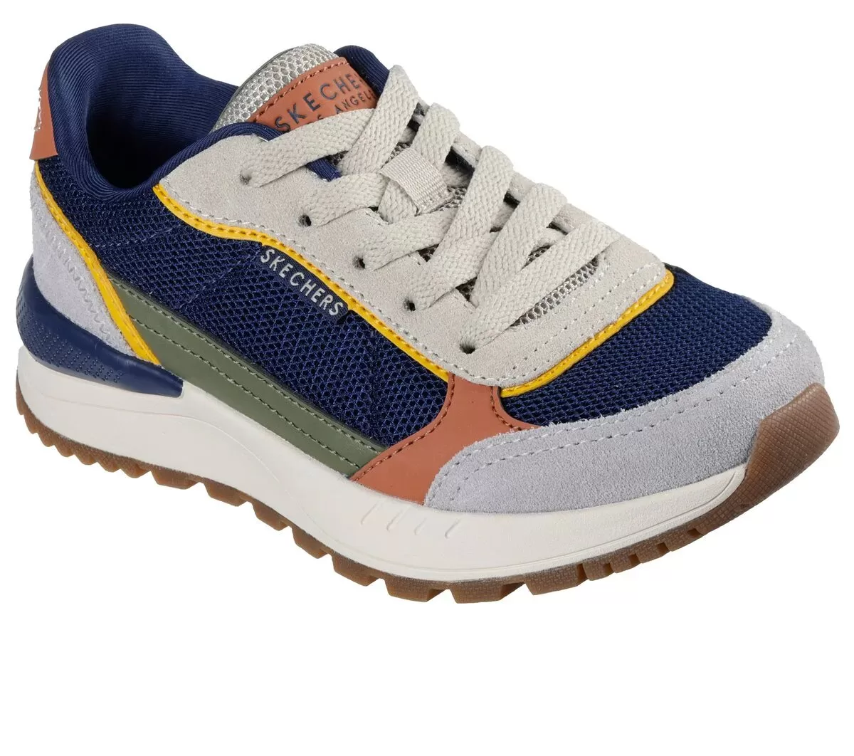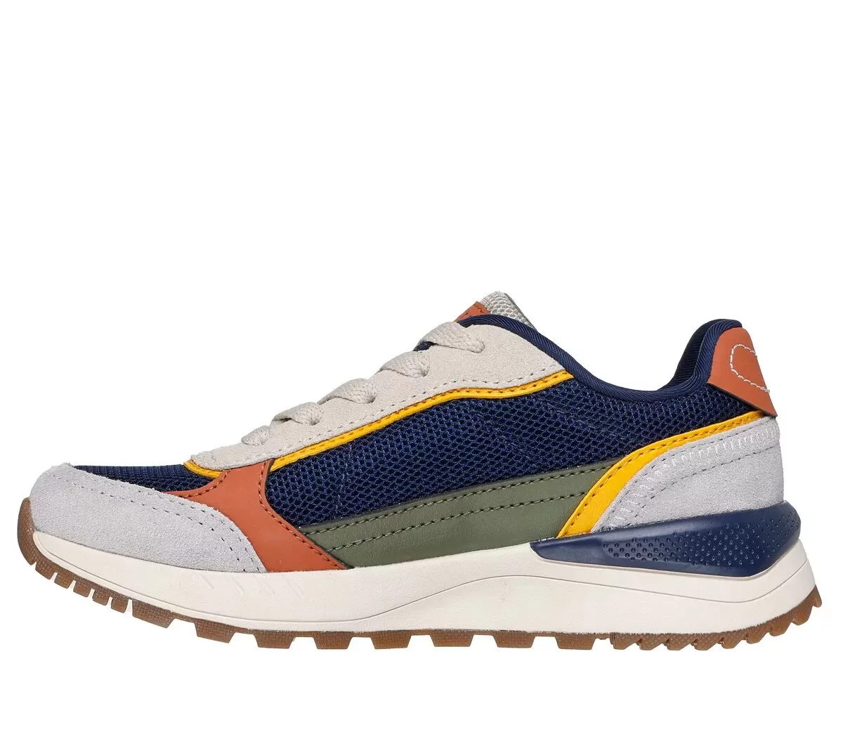 Behagelige fødder og sporty stil gør et godt par i Skechers Fury – Modern Ave. Denne farveblokerede jogger med snørebånd har en overdel i mesh, syntetisk og ruskind med en polstret Skechers Air-Cooled Memory Foam®-indlægssål.