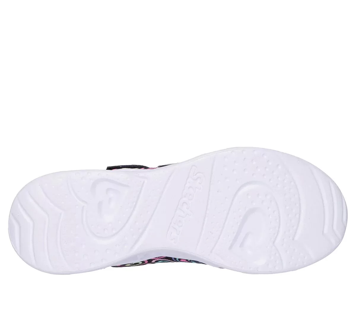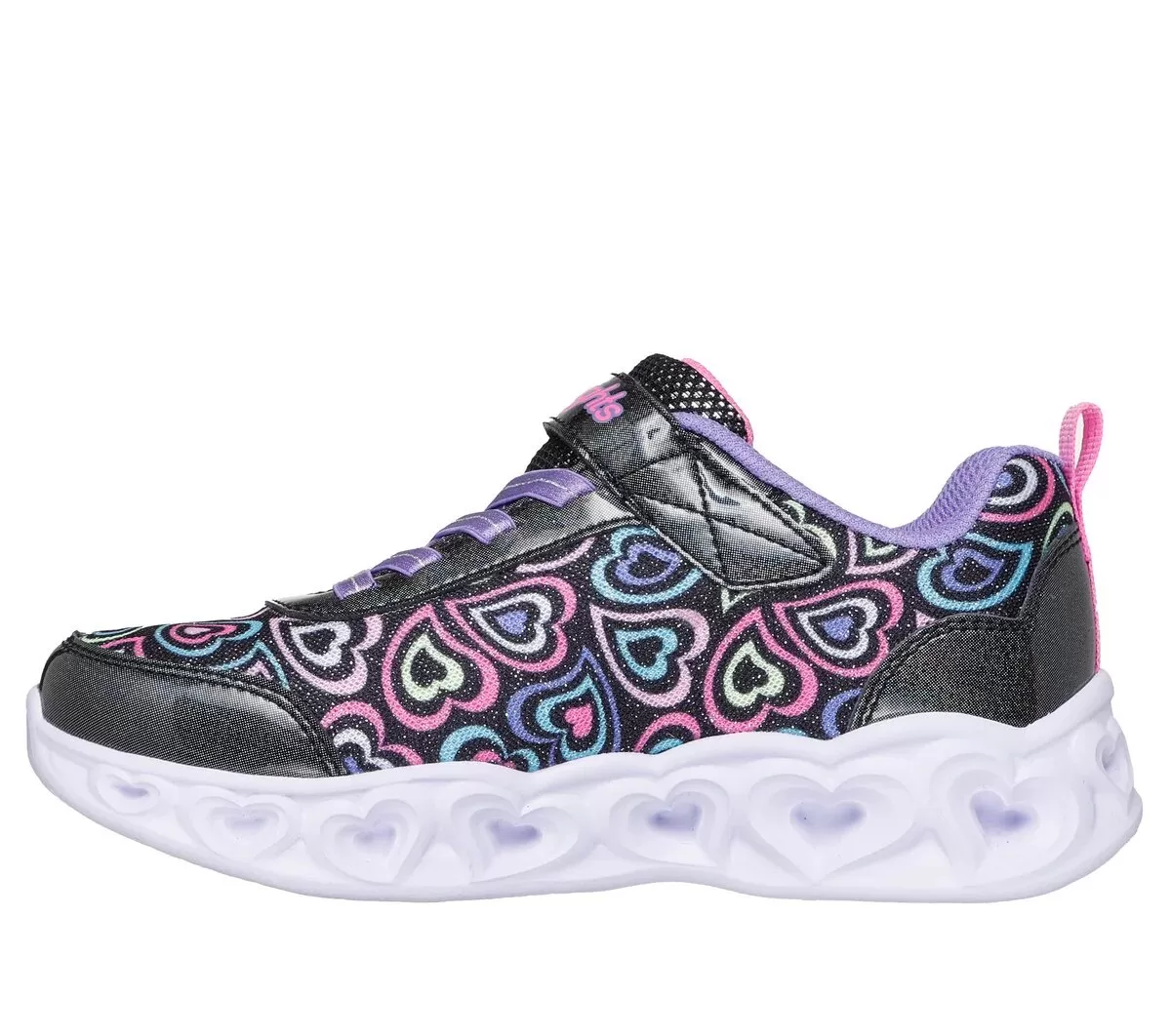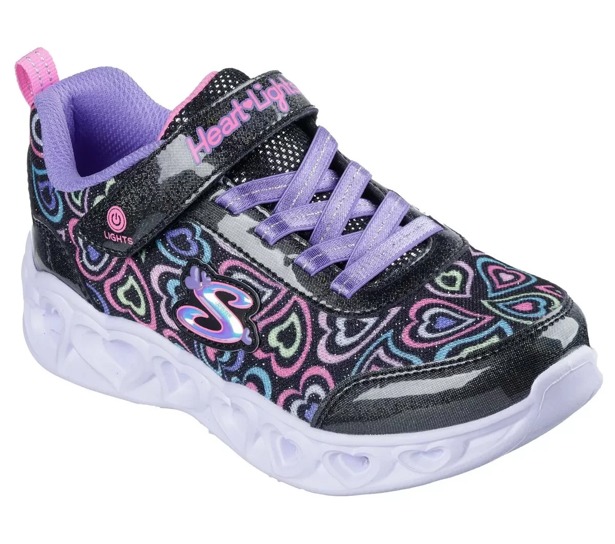 Fryd dem med den funklende sjov fra Skechers Heart Lights – Boogie Love. Denne farverige sneaker har en glitrende, hjerteprintet syntetisk overdel med faste stræksnørebånd og adaptiv lukning, plus en hjerteformet lys-op mellemsål.