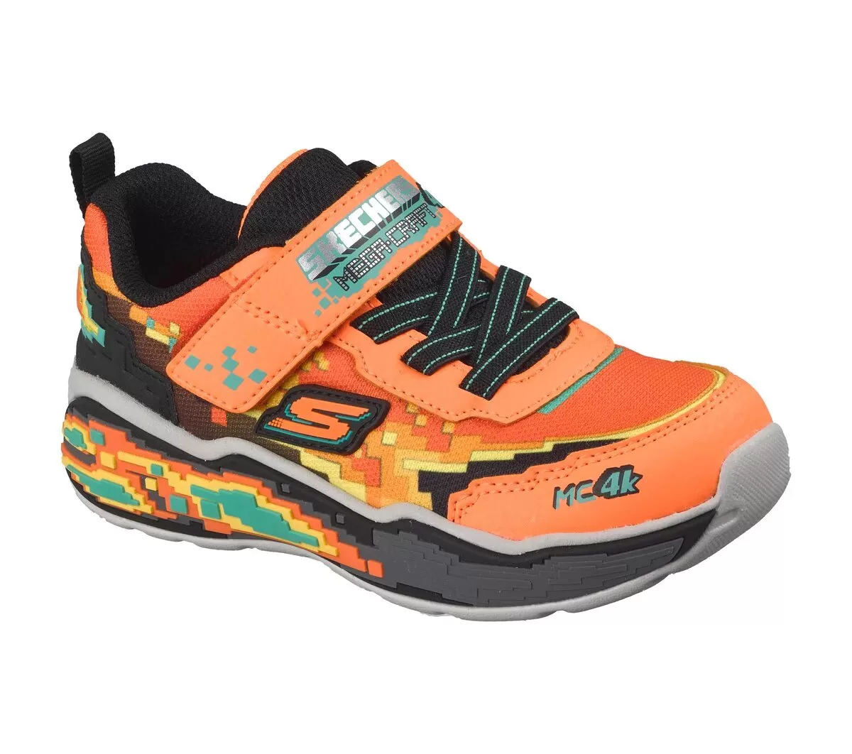 Blok-til-blok-stil og sporty komfort passer sammen i Skechers Mega Scene. Dette tematiske Mega-Craft®-design er lavet med en Skechers adaptiv lukning og har en overdel med pixelprintet med syntetiske overlejringer, stræksnørebånd, en justerbar vristrem og en sjov mellemsål i teknisk stykke.