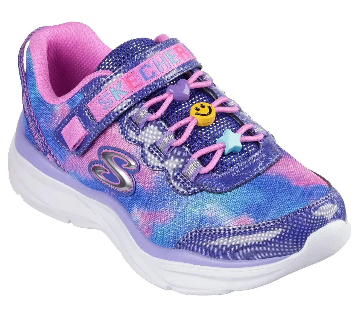 Del dit venskab i Colorful Comfort®-stil iført Skechers Power Jams – Skech Friends. Denne sporty stil, der kan maskinvaskes, har en skinnende mesh og syntetisk overdel med hæltræk, justerbar vristrem og en charmerende strækblonde foran. Venskabsarmbåndsgave medfølger ved køb.