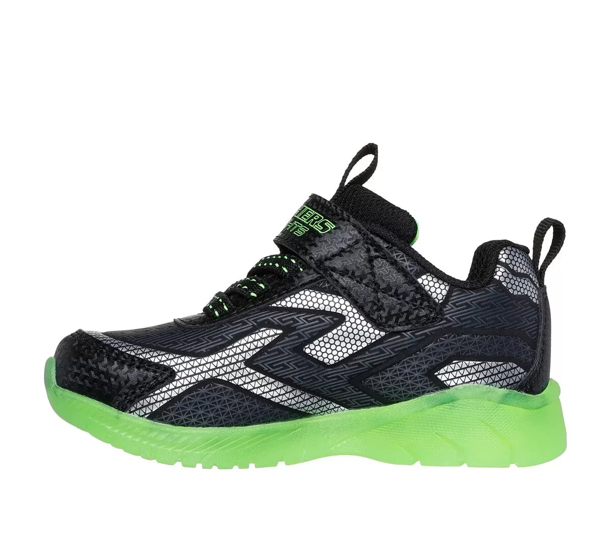 Gå med lysende sjov iført Skechers S-Lights®: Illumi-Brights – Grid Flash. Denne oplyste sneaker har en syntetisk overdel med stræksnørebånd, Skechers adaptiv lukning og en polstret komfort indersål
