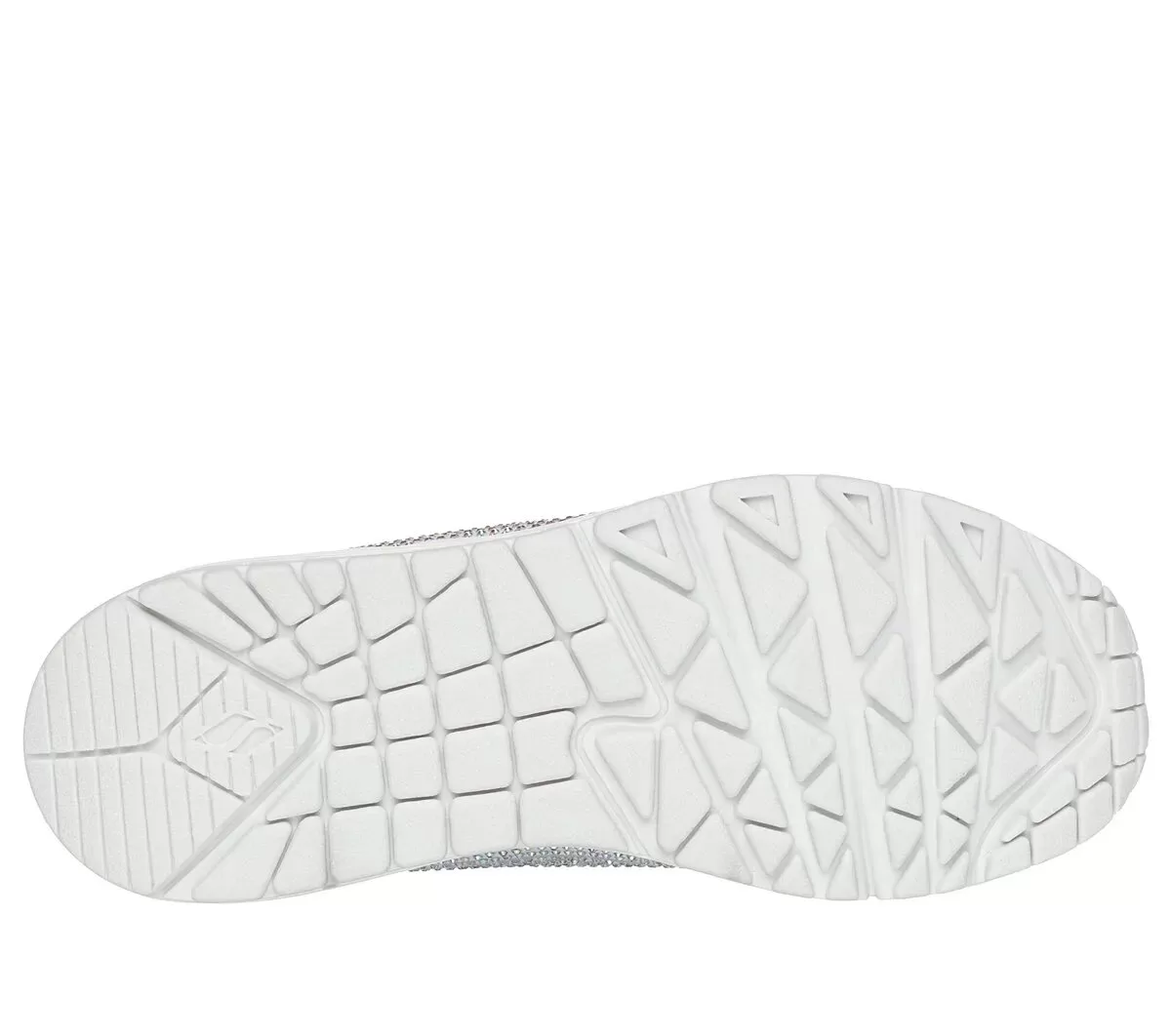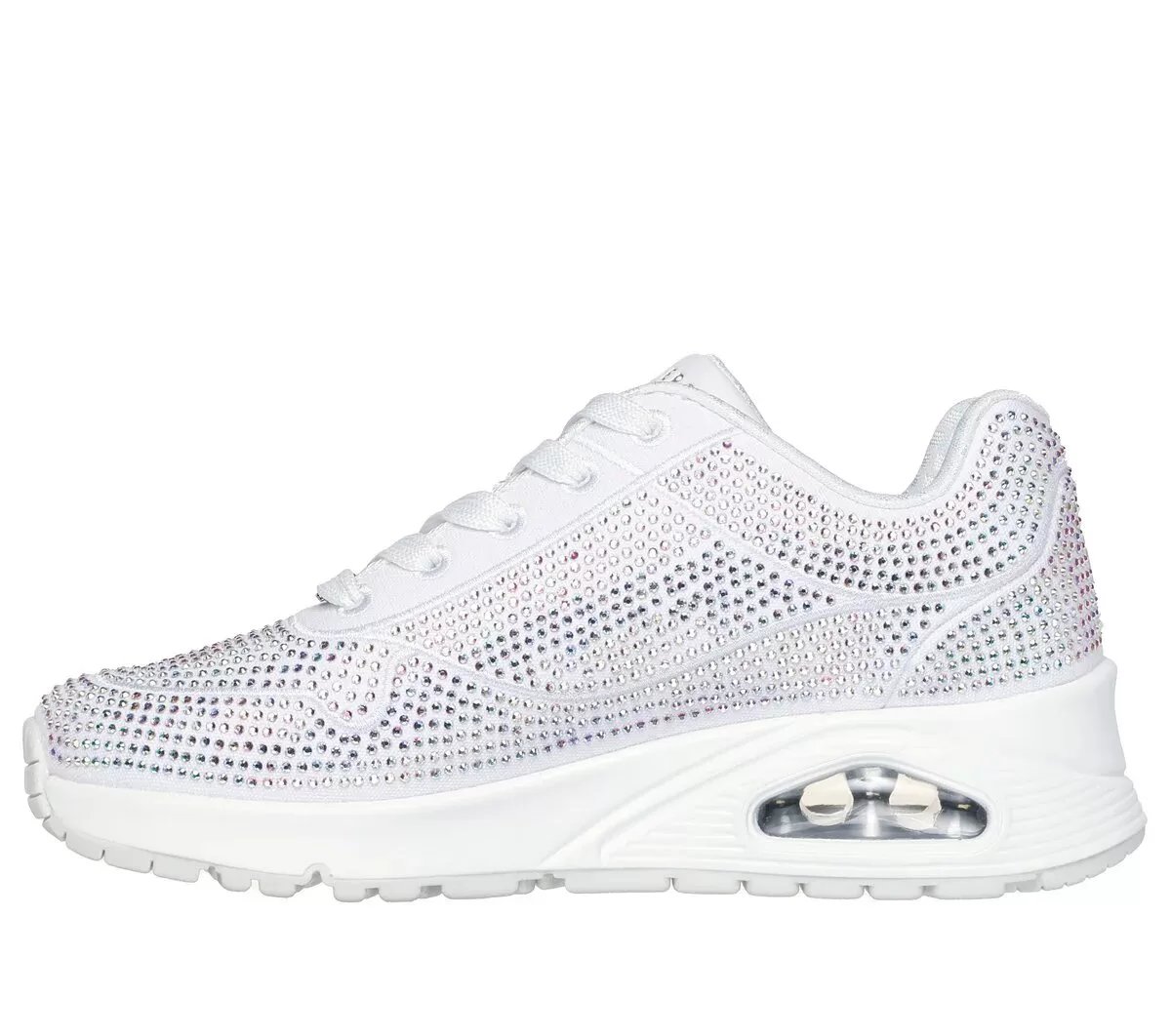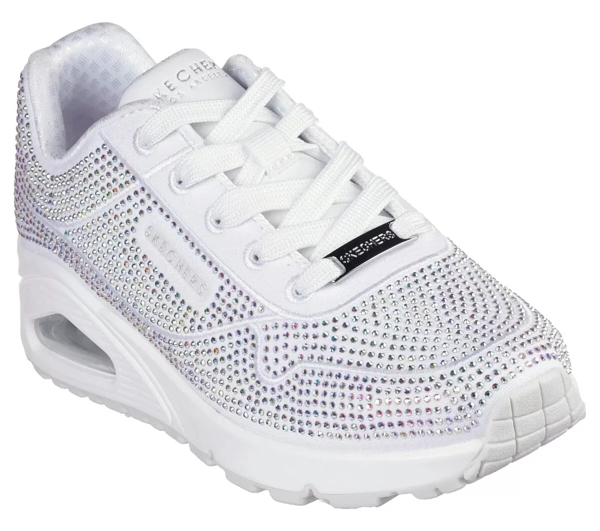 Blænd legepladsen i Skechers Street™ Uno Gen1 – Disco Rave. Denne modesneaker med snøre har en rhinstensdækket durabuck-overdel med en Skechers Air-Cooled Memory Foam®-komfort-indlægssål og en synlig Skech-Air®-airbag-mellemsål.