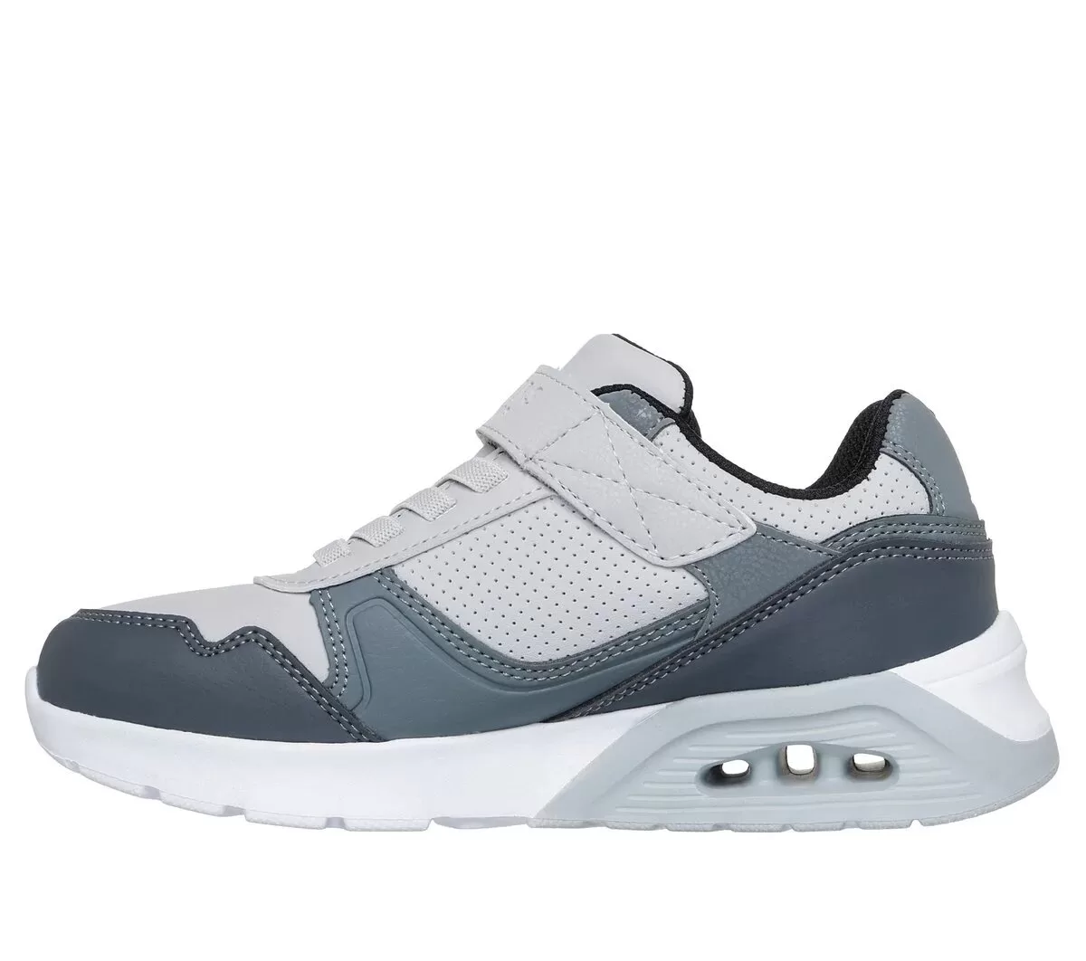 Spark det med stil med den klassiske Skechers Street™ Uno Lite 2.0 – Pillar Duo. Denne lette modesneaker har en overdel i syntetisk durale læder med kvarte perforeringer, stræksnørebånd, en justerbar vristrem og en polstret Skechers Air-Cooled Memory Foam®-indlægssål.