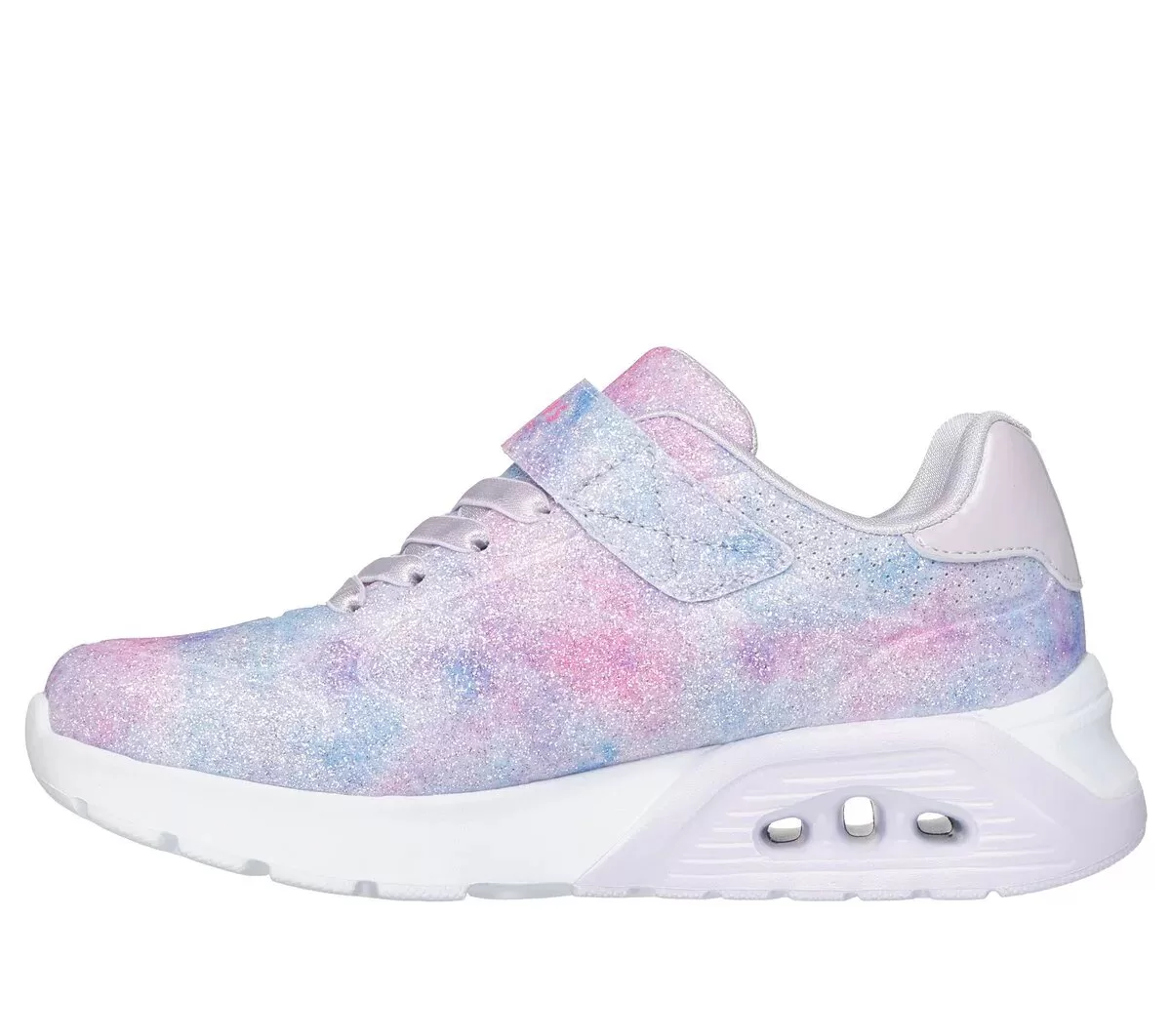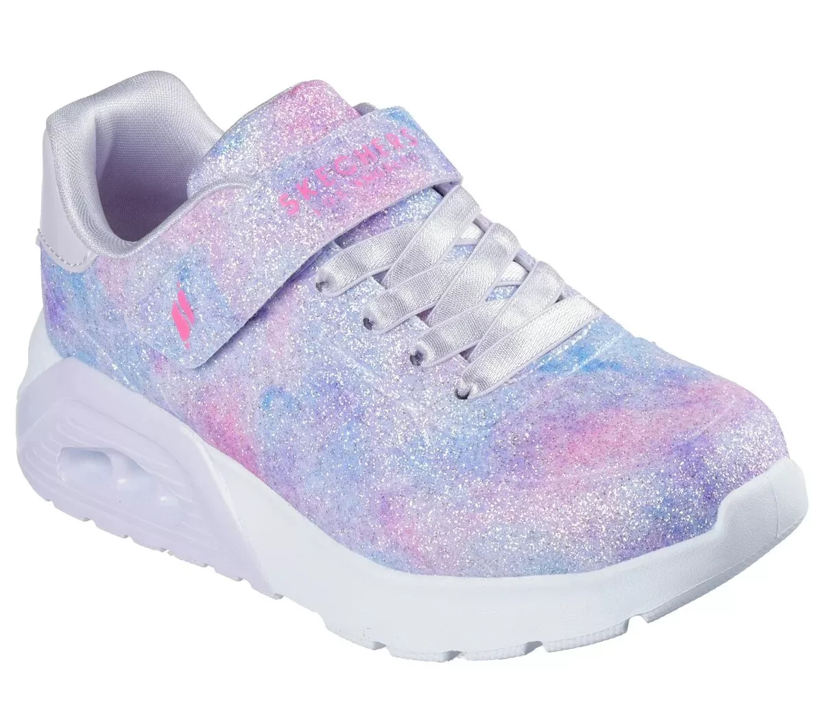 Forøg din stil med Skechers Street™ Uno Lite 2.0 – Glitter Spell. Dette lette Skechers adaptive lukningsdesign har en ombre glitteroverdel med faste stræksnørebånd, en krog-og-løkke vristrem, en malet mellemsål med udskæringer og en Skechers Air-Cooled Memory Foam® komfort-indlægssål.