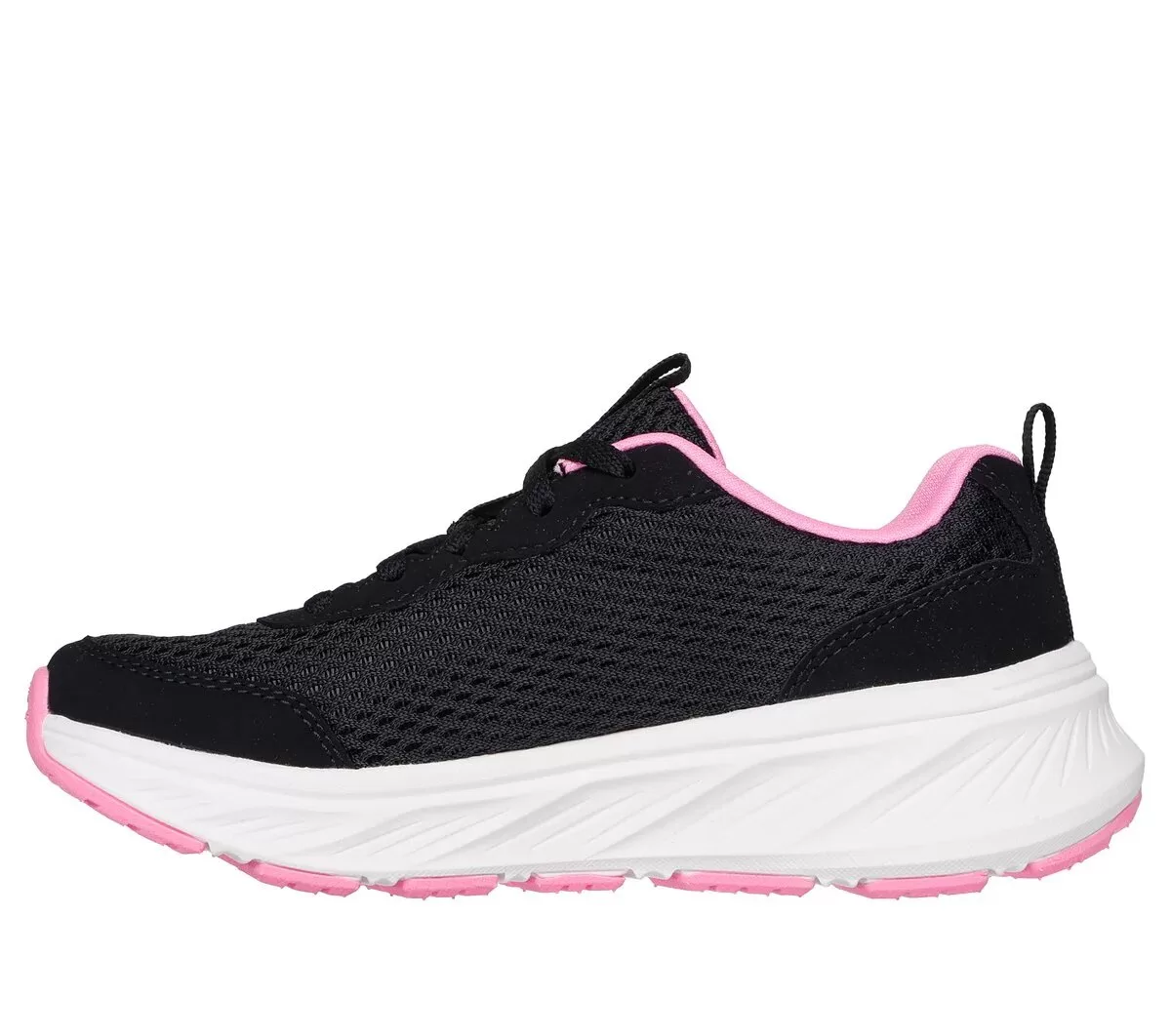 Gå til legepladsen i uafbrudt komfort iført Skechers Edgeride. Sålen på dette Skechers adaptive lukningsdesign er bygget til at modstå slid og slid og har en overdel i mesh og syntetisk overlejring med snøre foran og en slidstærk gummiydersål.