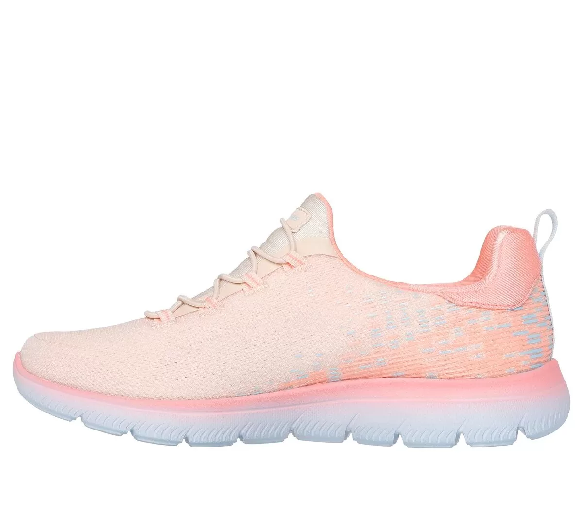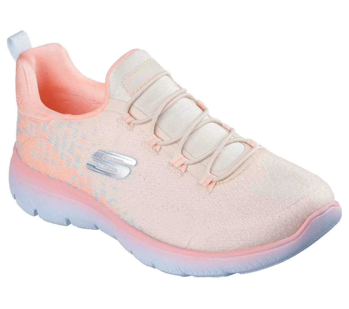 Nå højden af komfort og atletisk stil med Skechers Summits – Morning Glow. Dette veganske design med stretch-snøre har en mono-mesh-overdel og en polstret Skechers Memory Foam™-komfort-indersål.