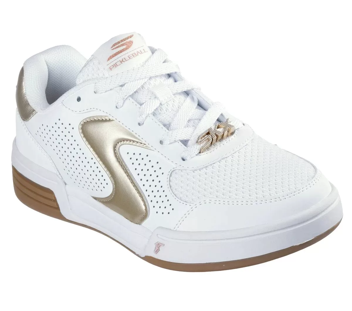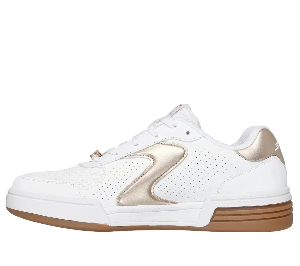 Løft dit spil med maksimal komfort iført Skechers Viper Court Classic. Dette performance-banedesign har en perforeret læder- og mesh-overdel med metallisk quarter ‘S’-logo, en let Move Foam™-indlægssål plus en Goodyear® Performance-ydersål, der er bygget til øget holdbarhed og kontrol på banens overflade.