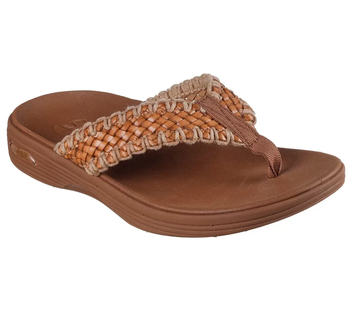 Nyd stil i varmt vejr og komfort med Arch Fit® Maui – Sweet Waves. Denne 3-punkts string-sandal har en overdel i vævet imiteret læder og jute med en understøttende Arch Fit®-fodseng.