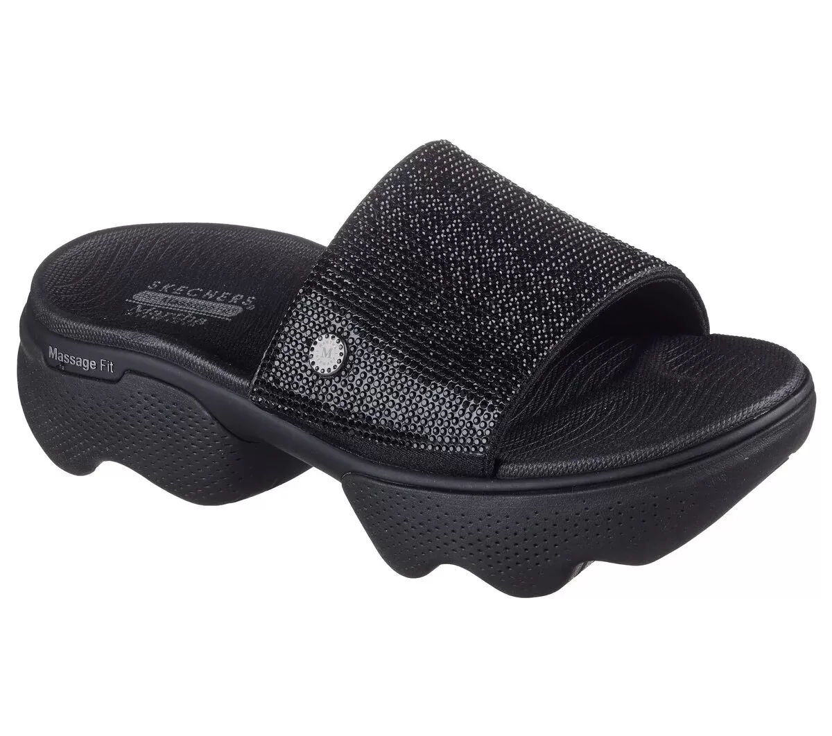 Den fejrede livsstilsekspert, Martha Stewart, giver Skechers sit enestående præg i dette livlige samarbejde. Skins lyst i innovativ komfort med Martha Stewart x Skechers: Massage Fit Edge – Radiance. Denne veganske glidesandal har en overdel med rhinstensdækket enkelt krydsbånd, en kontureret Goga Mat® fodseng med Arch Comfort® for ekstra støtte, og vores unikke Massage Fit™ mellemsål, der blidt masserer dine fødder med hvert trin.