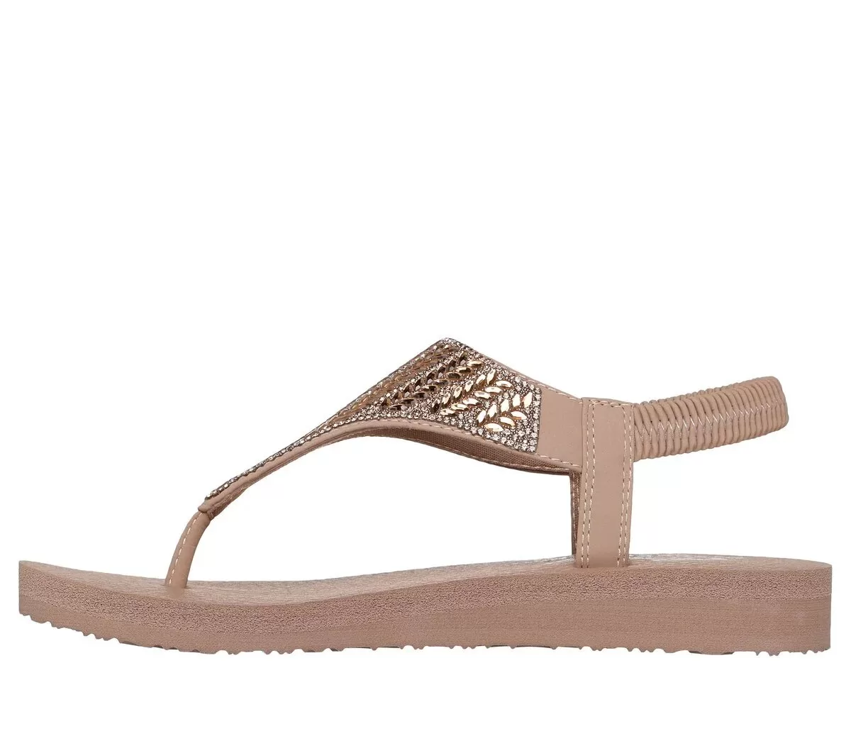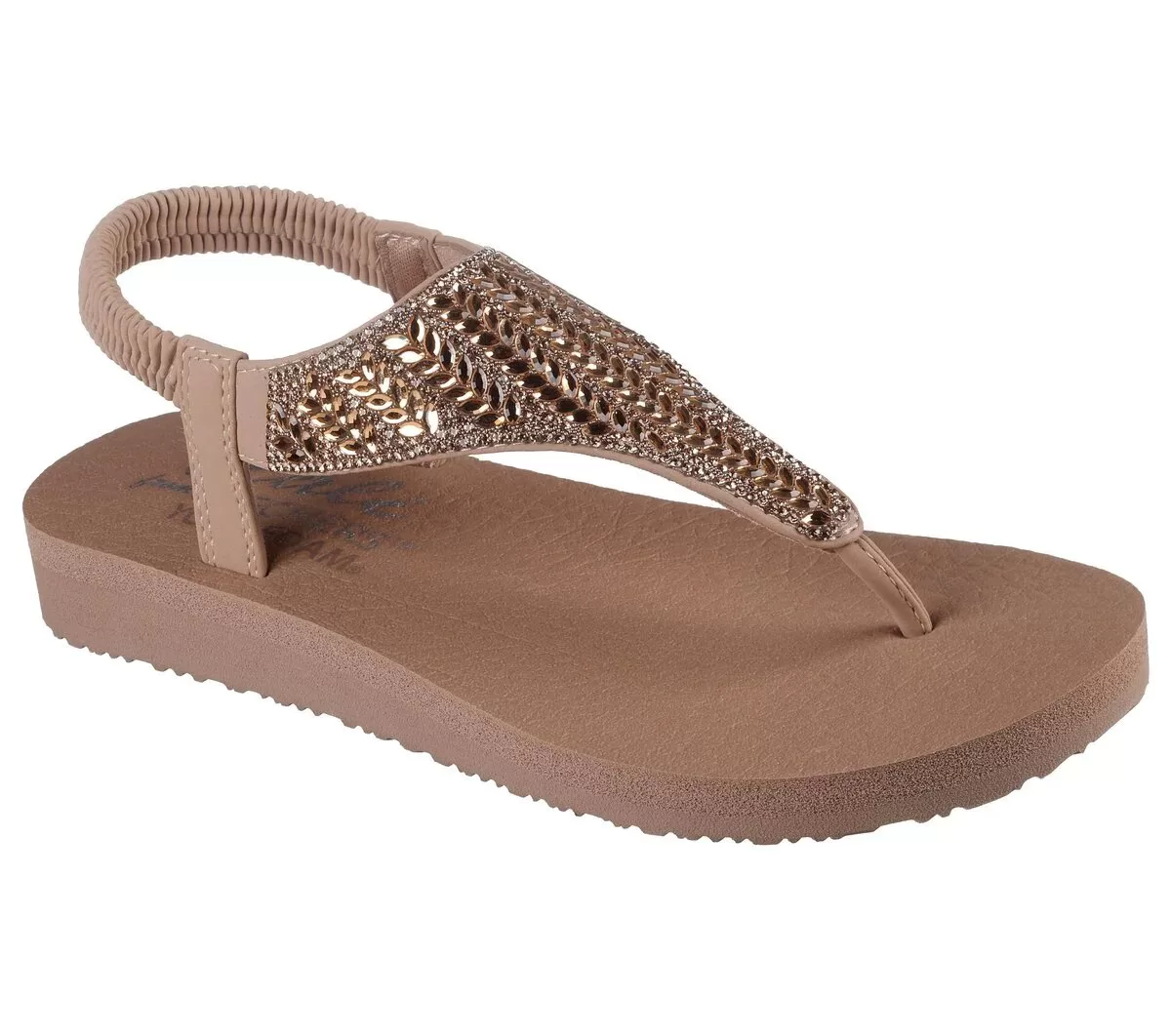 Føj lidt glam og komfort til dit look med Skechers Cali® Glamorous Muse. Denne veganske pull-on slingback-sandal har en syntetisk overdel med rhinstensudsmykning og en polstret Yoga Foam® fodseng.