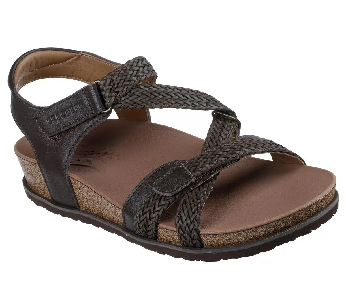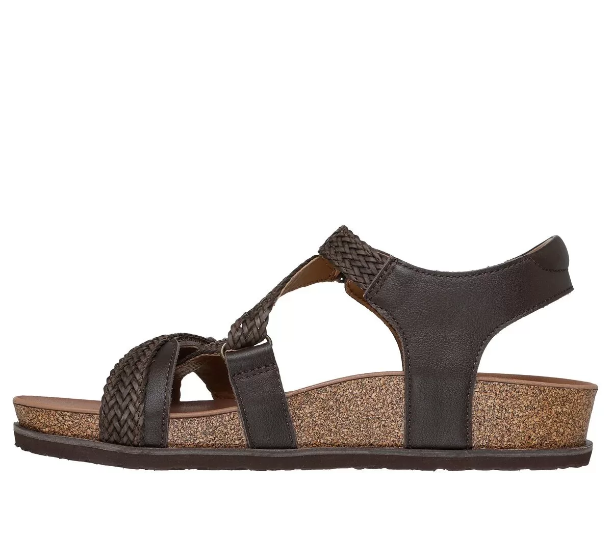 Slap af i stilfuld komfort i varmt vejr iført Skechers Arch Fit® Granola Slim – True Vibe. Denne sandal med stropper har fået APMA Seal of Acceptance og har en overdel i vævet læder med to justerbare krog-og-løkke-lukninger og en støttende Arch Fit®-fodseng med Luxe Foam®-støddæmpning.