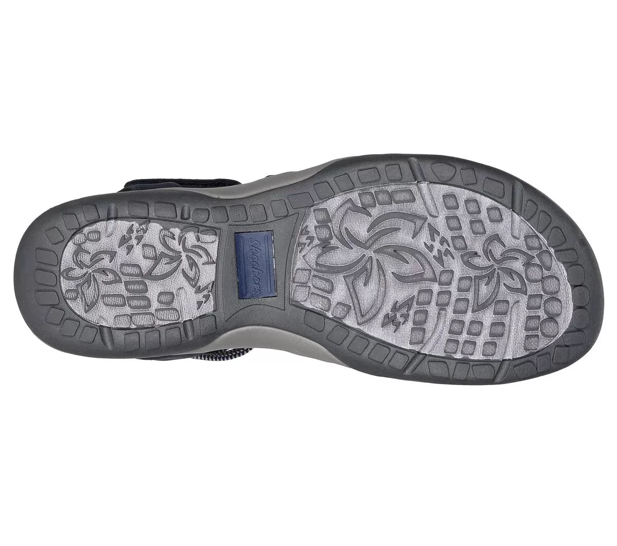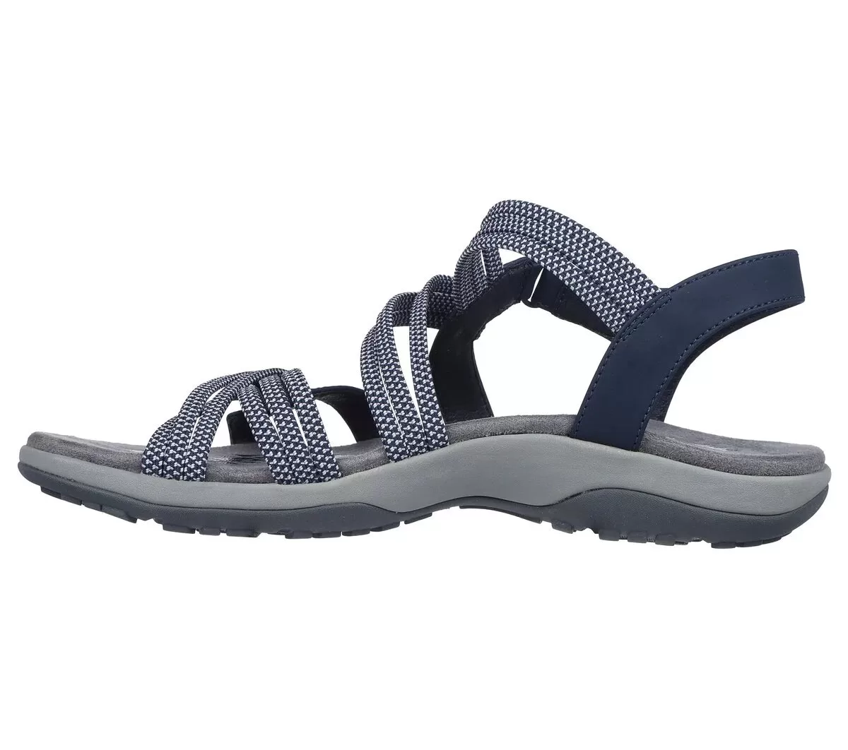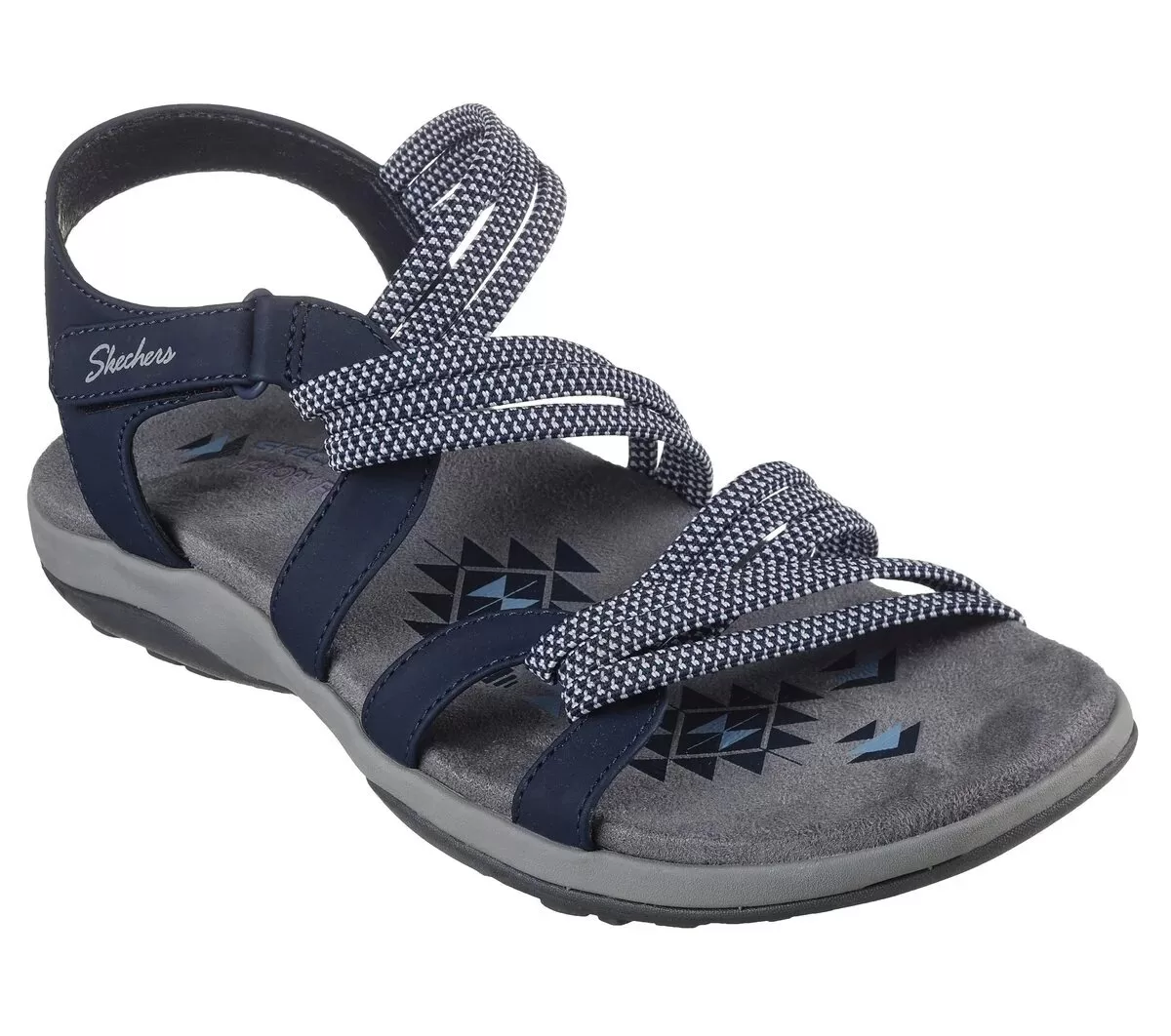 Komfort og stil i solrigt vejr kombineres i Skechers Reggae Slim – Summer Of Fun. Denne sandal med stropper har et vævet stof og en syntetisk overdel med en justerbar stroplukning samt en polstret Skechers Memory Foam™ fodseng.