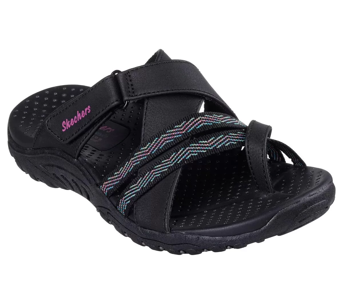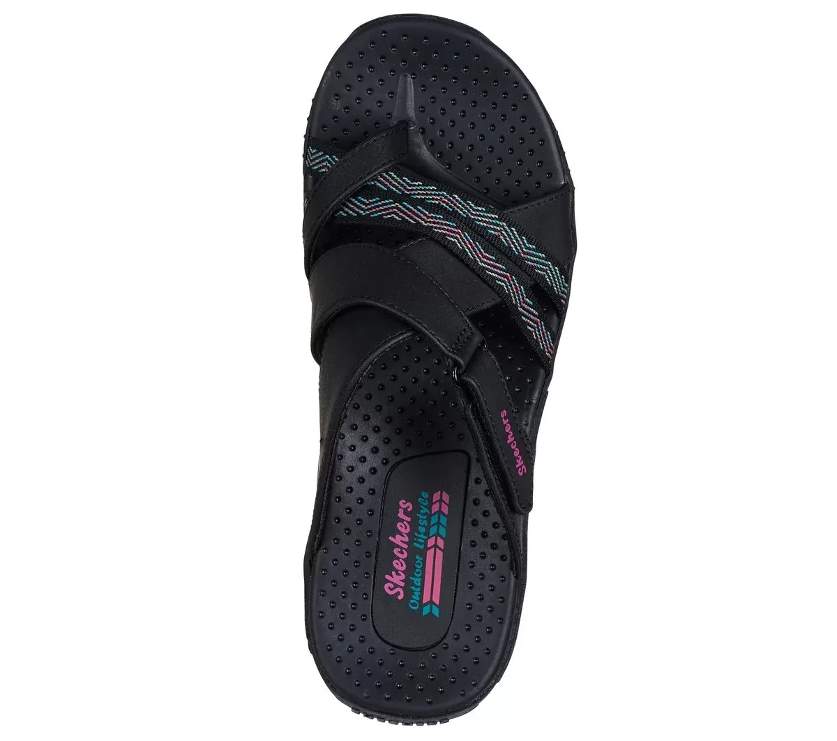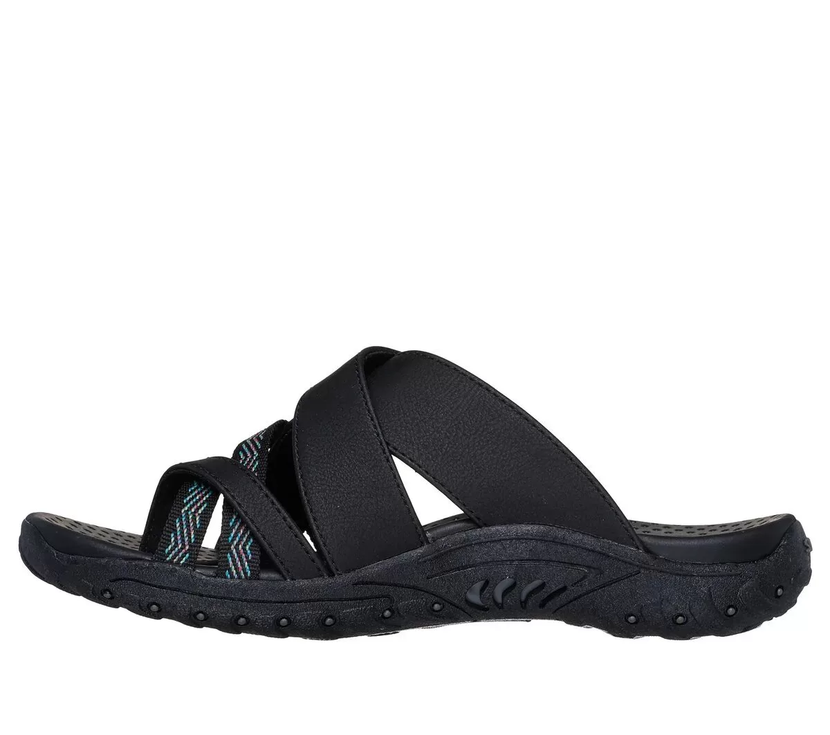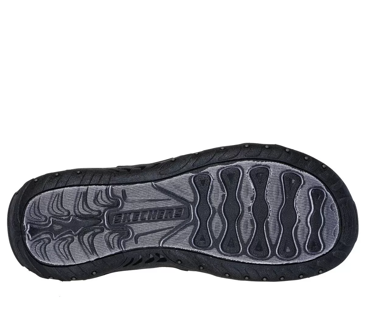 Udforsk det store udendørs i grænseløs komfort med Skechers Reggae – Sunday Stroll. Denne trail slide-sandal har en overdel i syntetisk og vævet stof med en polstret komfortfodseng.