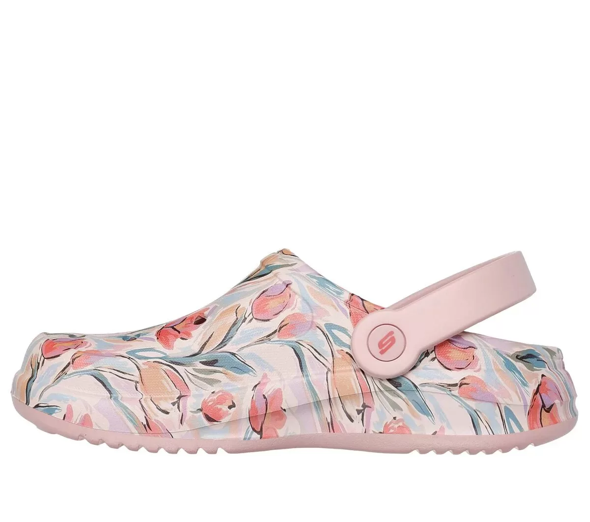 Peal ind for stil iført Skechers Foamies®: Blooming. Denne slip-on træsko har en overdel i EVA-skum med blomstret print og en konvertibel hælrem og en polstret komfortfodseng.