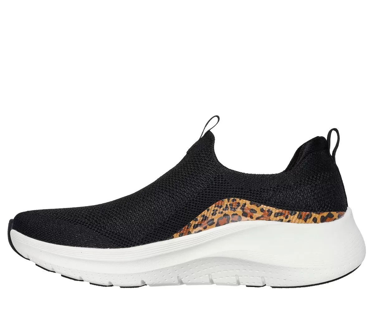 Komfort og støtte hele dagen kombineres i Skechers Arch Fit® 2.0 – Wild Path. Dette snørebåndsløse veganske design har en Stretch Fit®-konstrueret strikoverdel med en leopardprintkant og en aftagelig Arch Fit®-indlægssål.