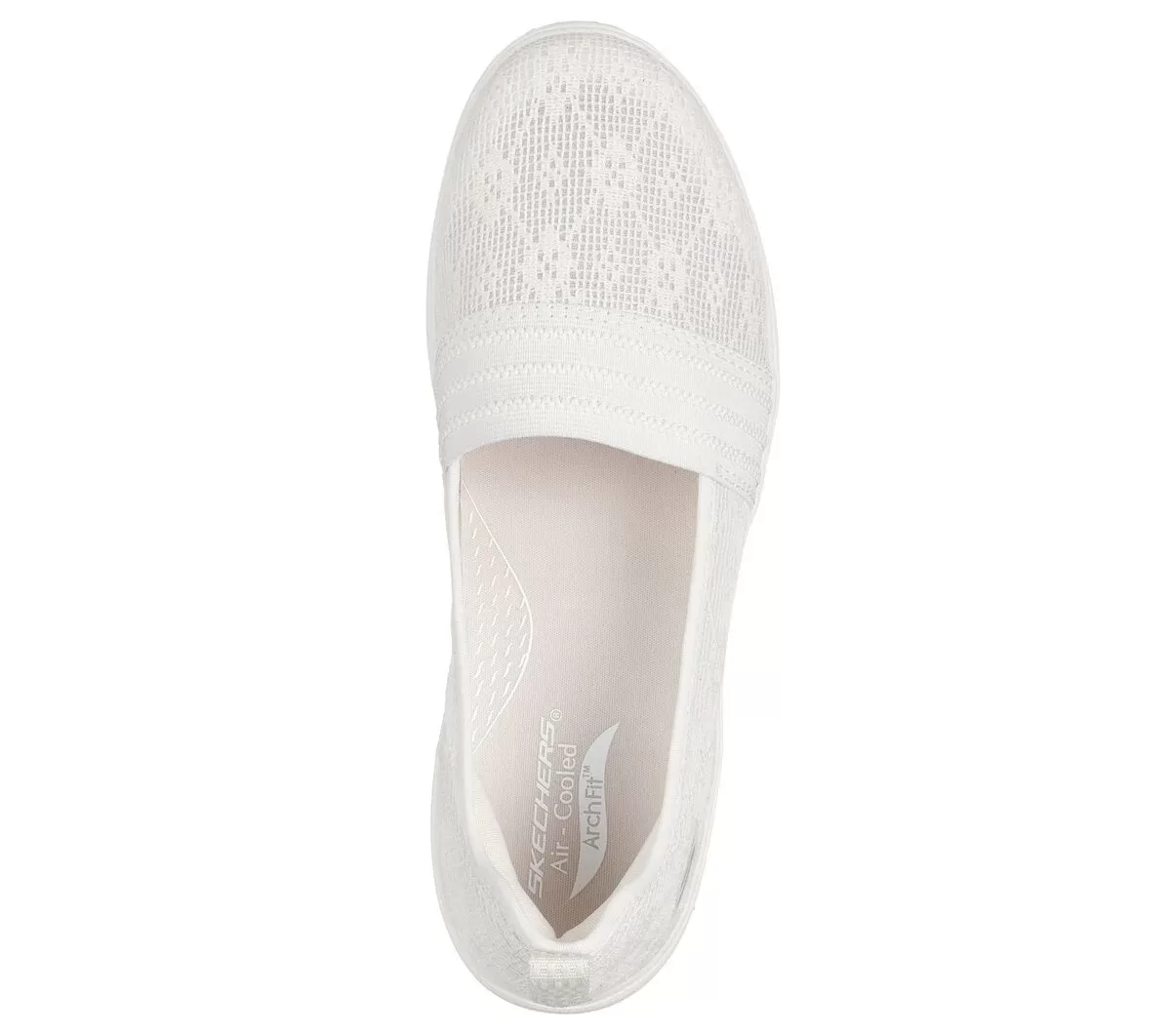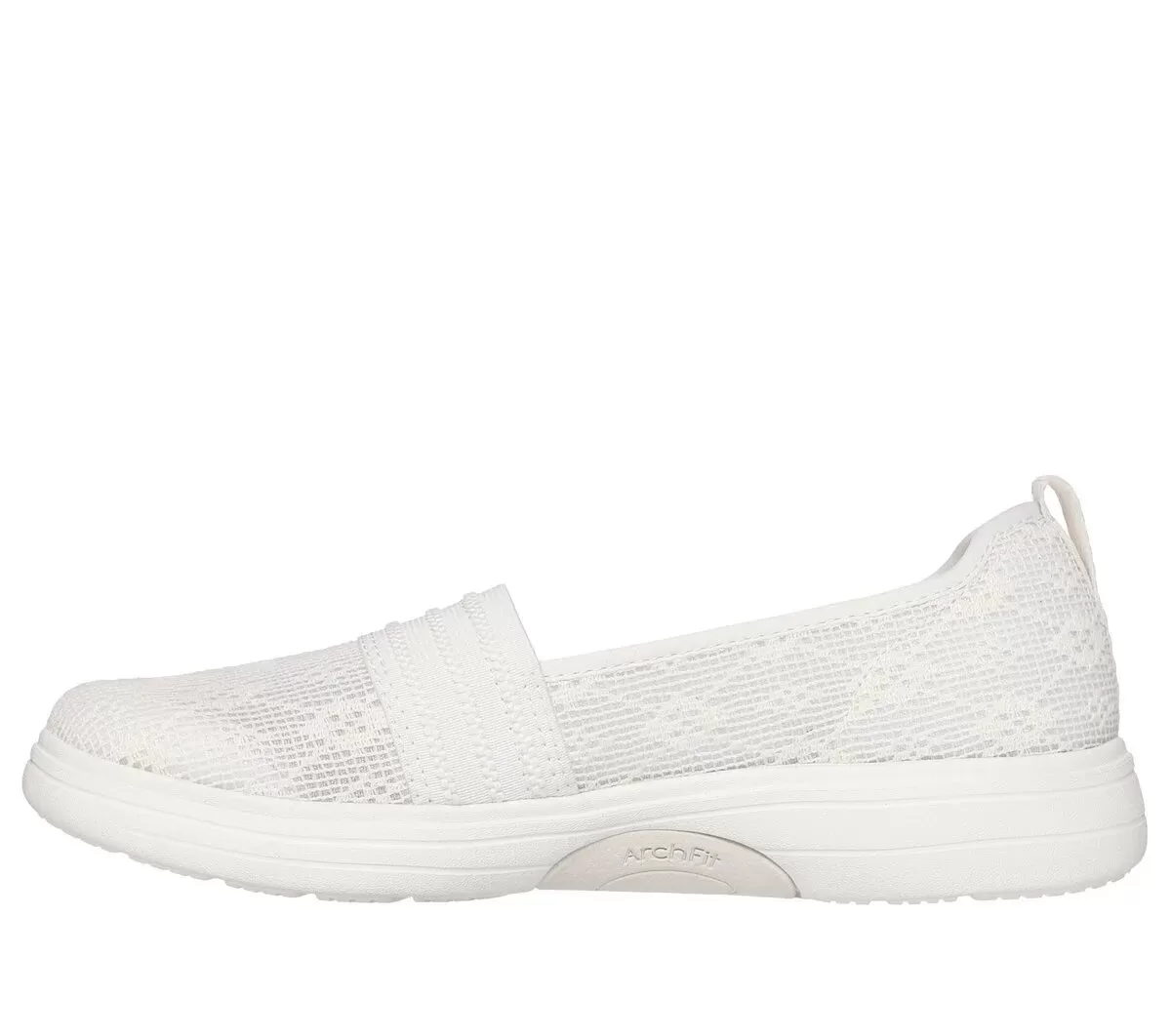 Blomst med stil og komfort i Skechers Arch Fit Inspire – Nova. Denne veganske skimmer er blevet tildelt APMA Seal of Acceptance og har en overdel af blonder i mesh, letvægts ULTRA GO®-dæmpning og en udtagelig Arch Fit®-indlægssål.