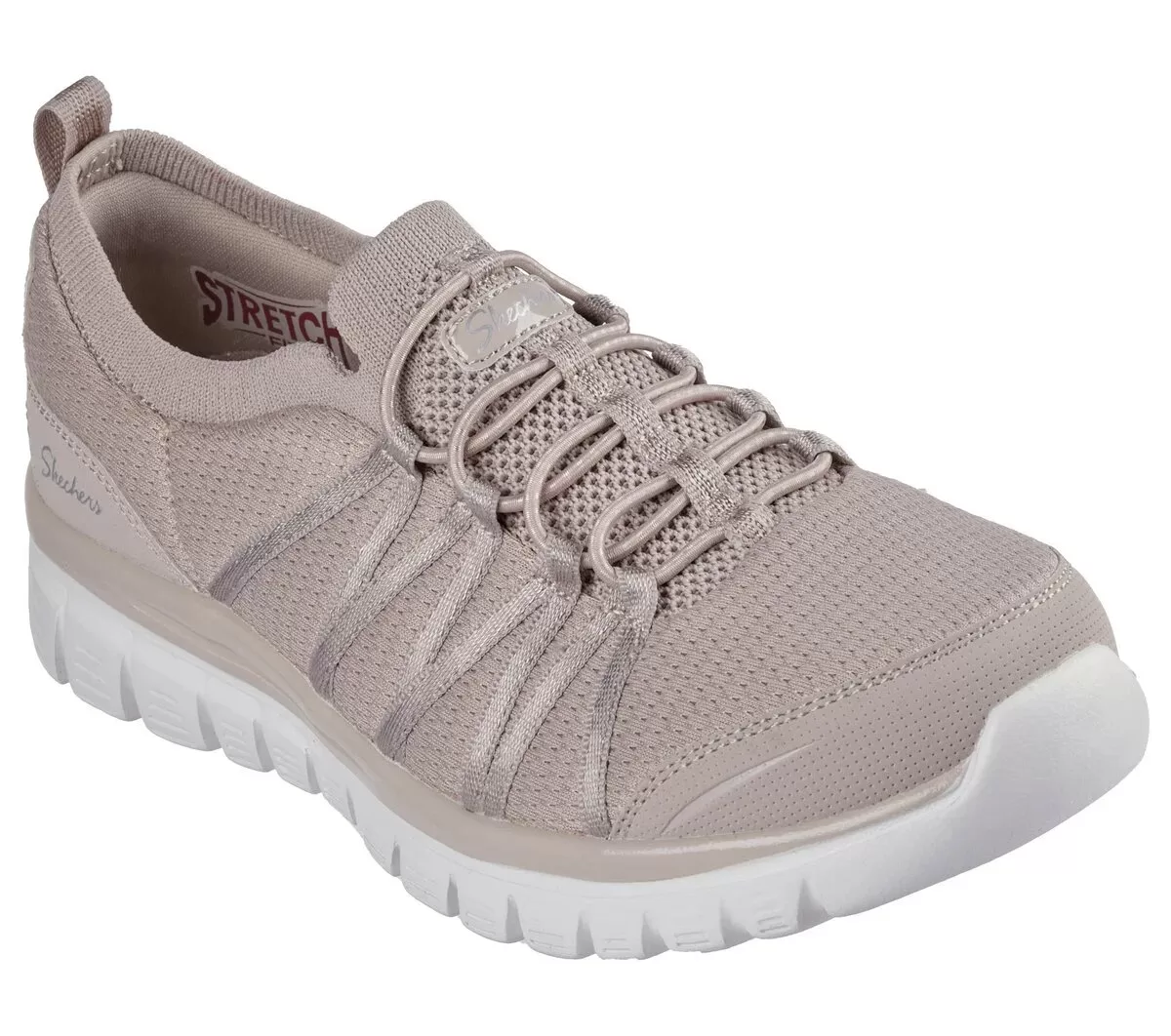 Præd dine fødder med nem at bære komfort i Skechers Graceful – Soft Soul. Denne veganske stil med stretch-snøre har en Stretch Fit® mesh og en syntetisk overlay-overdel med en polstret Skechers Memory Foam™ indersål.