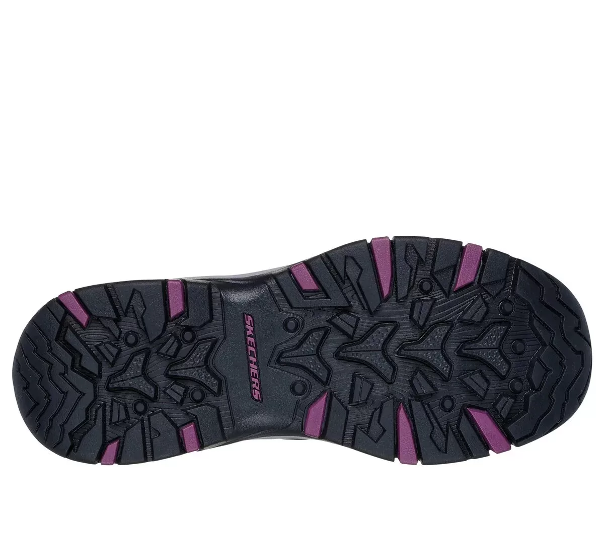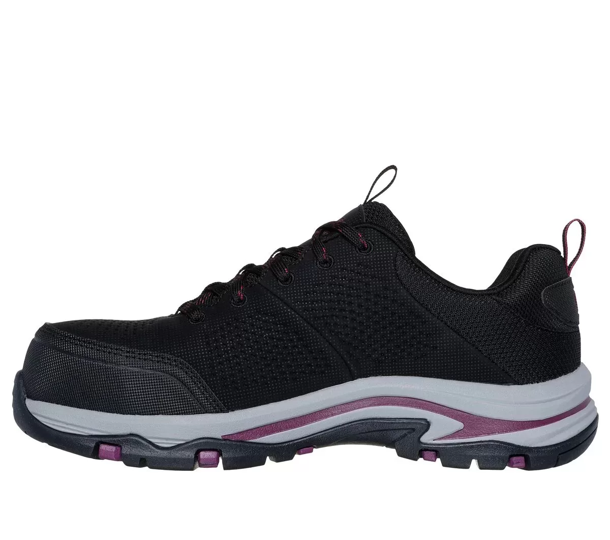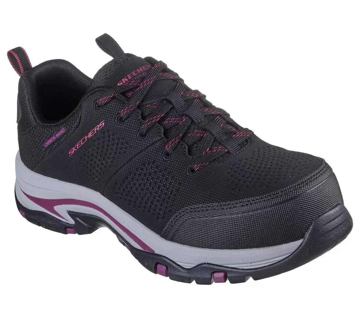 Sikker fodkomfort og sikkerhed leverer i Skechers Work™ Trego – Astallet CT. Dette hiker-inspirerede design med snørebånd har en overdel i syntetisk og vævet stof med en polstret Skechers Air-Cooled Memory Foam®-indlægssål og en carbon nano-komposittå.