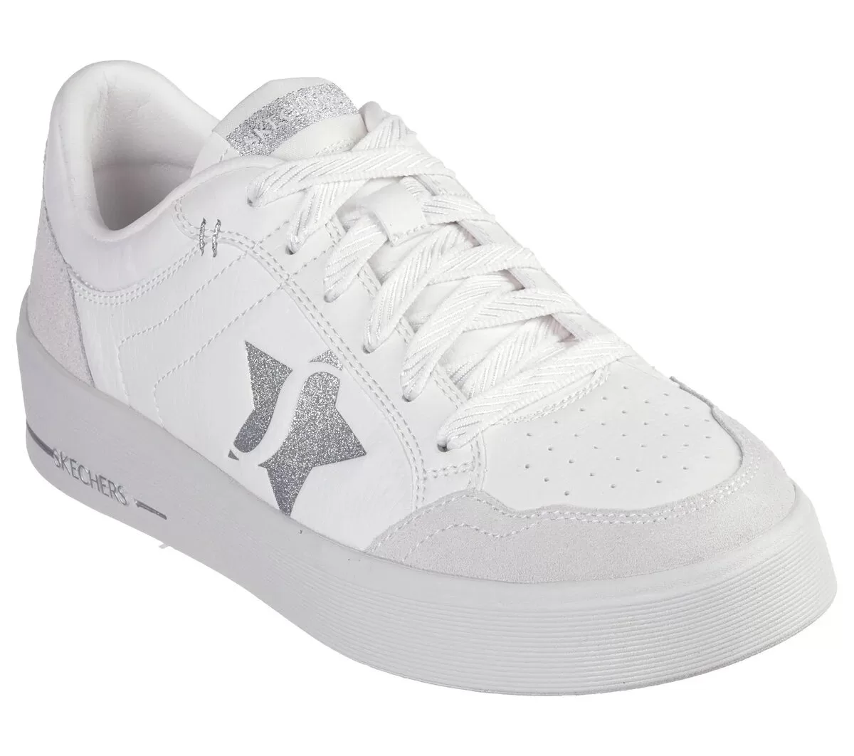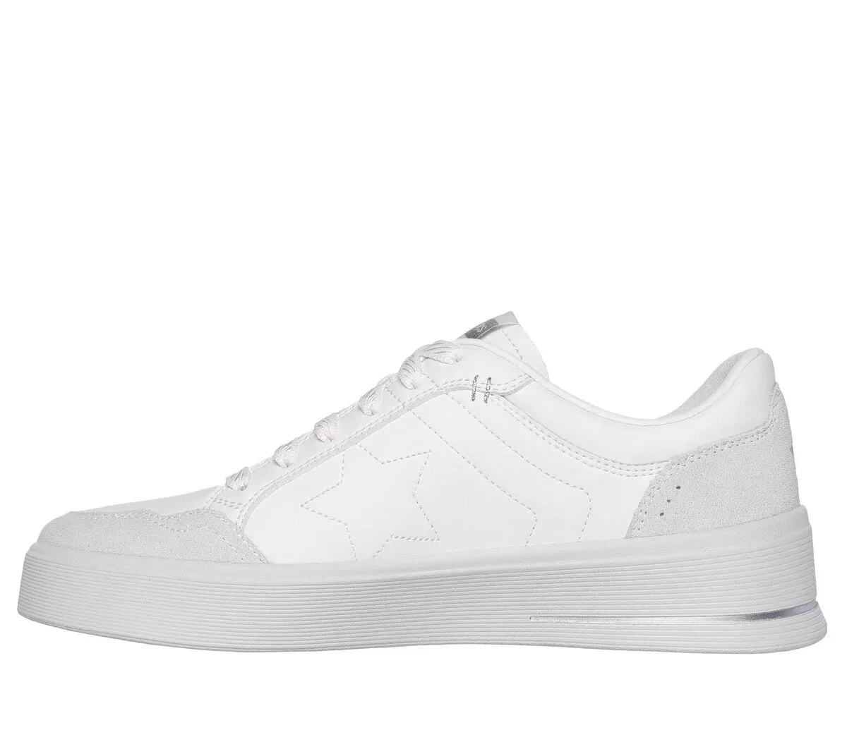 En moderne klassisk stil kombineres med komfort i Skechers Hiland – Illuminated Neutrals. Denne snørebånd har en overdel i duralelæder med ruskindsovertræk, en polstret Skechers Air-Cooled Memory Foam®-indlægssål og en skjult kile.
