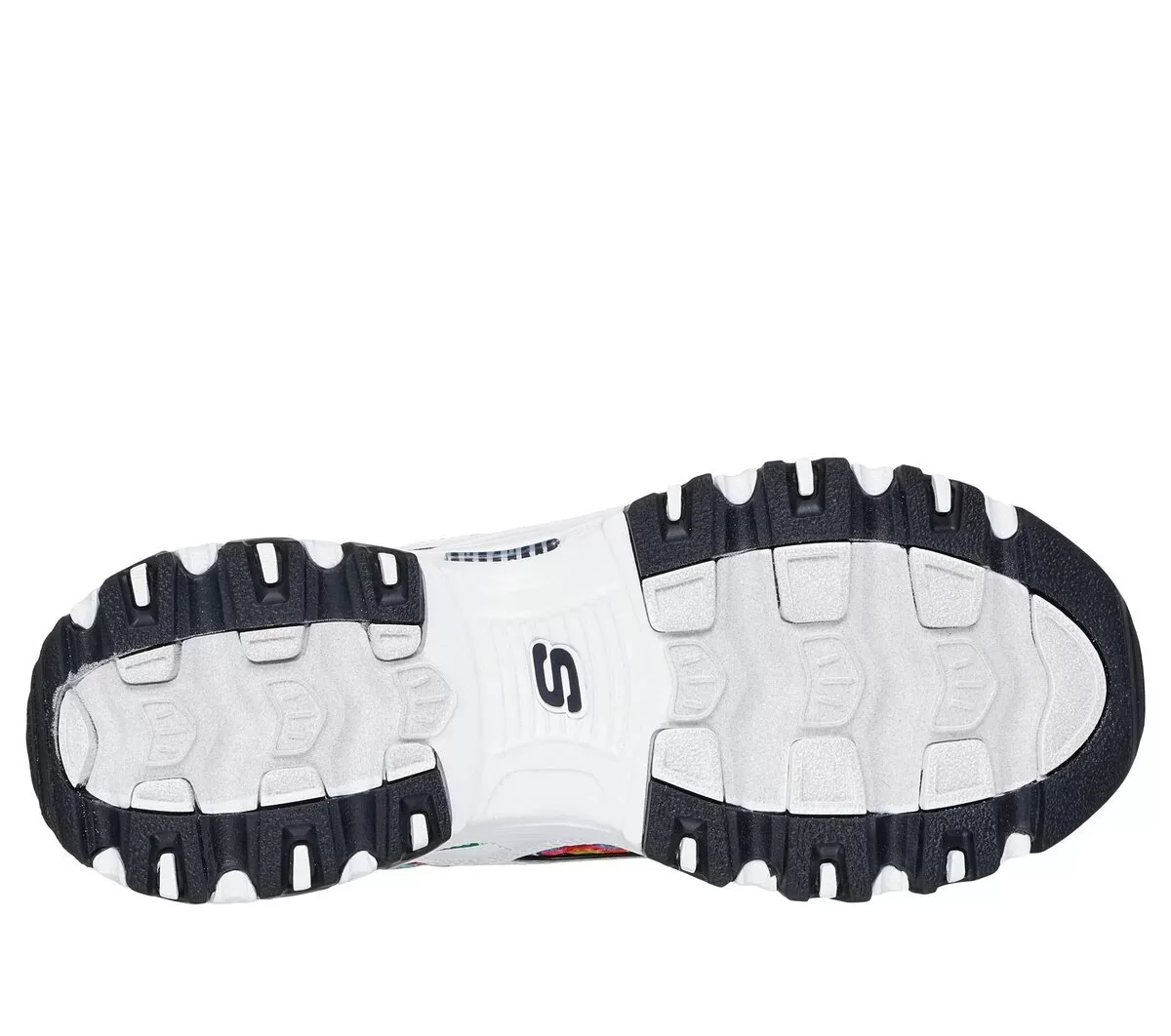 Jen Stark bringer sine hypnotiske og fængslende farverige mønstre til Skechers i dette kreative samarbejde. Den iøjnefaldende Skechers x Jen Stark: D’Lites – Fresh Drip har en overdel med snørebånd og duralelæder, der er lagt over kunstnerens karakteristiske drypdesign og en Skechers Air-Cooled Memory Foam®-indlægssål.