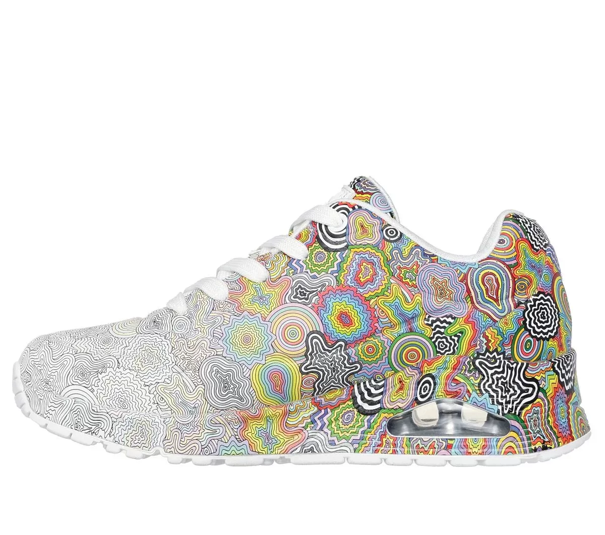 Jen Stark bringer sine hypnotiske og fængslende farverige mønstre til Skechers Street™ i dette kreative samarbejde. Den iøjnefaldende Skechers Street™ x Jen Stark: Uno – Kaleidoscope Dream har kunstnerens karakteristiske dryp-design i en sort-hvid-til-farve gradient på en syntetisk durabuck-overdel med en Skechers Air-Cooled Memory Foam®-indlægssål og en synlig Skech-Air®-airbag-mellemsål. er kendt for sit enestående arbejde på tværs af forskellige medier. Hendes ekspertise ligger i at skabe fascinerende optisk kunst, der anvender psykedeliske nuancer, indviklet efterligning af mønstre og flydende dryp, der minder om naturens fængslende motiver. Hendes pulserende, abstrakte illusioner har prydet adskillige vægmalerier og prydet væggene på kunstmuseer og gallerier over hele kloden – og går nu over i Skechers x Jen Stark-samlingen.
