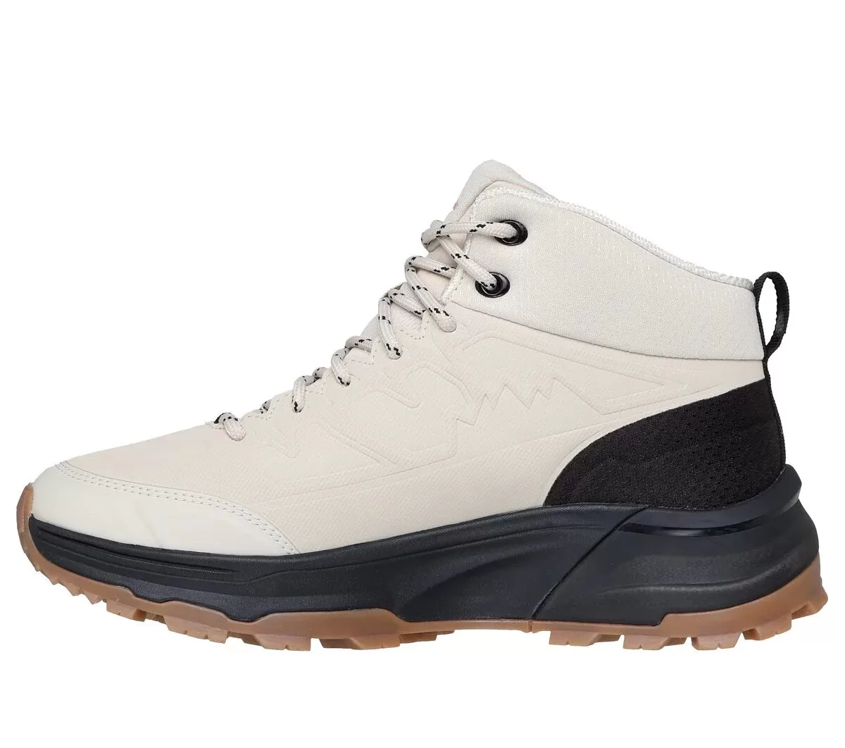 Oplev komfort hele dagen ude på stien med Skechers Max Protect Legacy – Weekend Getaway. Dette vandtætte udendørs stidesign har en overdel i syntetisk og mesh-snørebånd, Skechers Air-Cooled Memory Foam®-indlægssål og en klippeplade-mellemsål for ekstra beskyttelse på barske terræner.