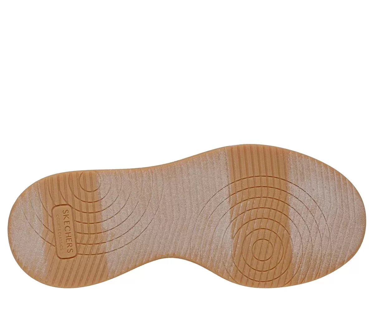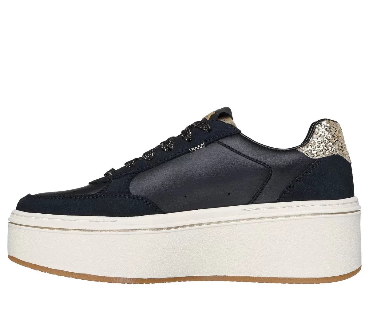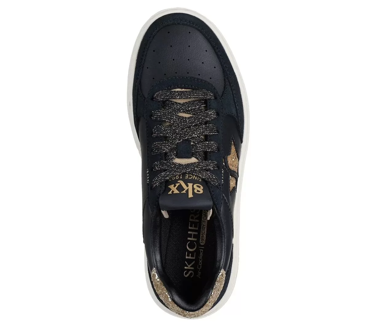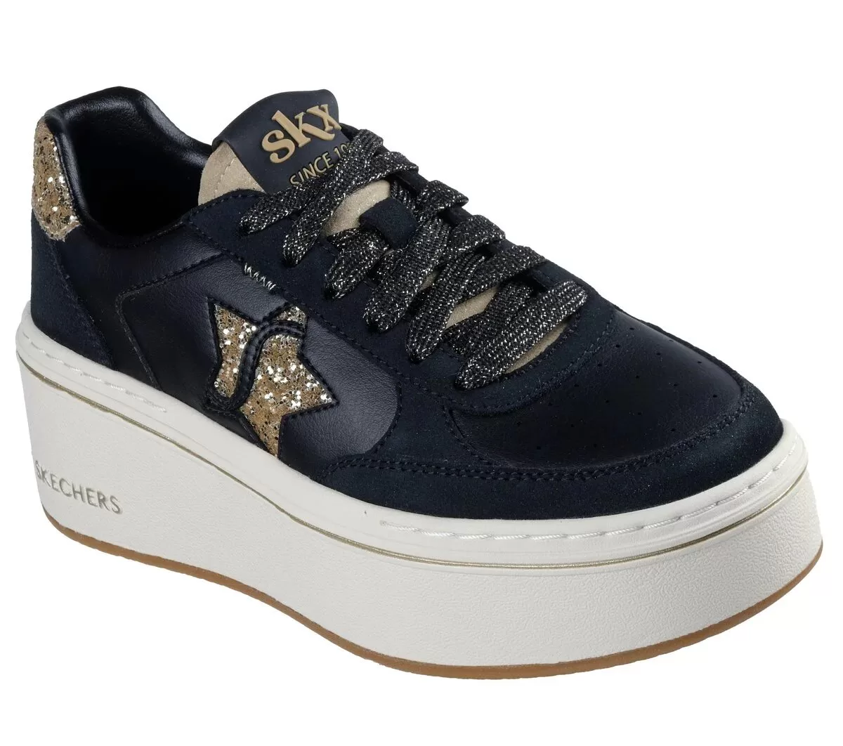 Nå nye højder af stil med Skechers Paloma – Brightest Star. Denne platformstil med snørebånd har en overdel i durale læder og ægte ruskind med en glitrende stjernedetalje og en polstret Skechers Air-Cooled Memory Foam®-komfort-indlægssål.