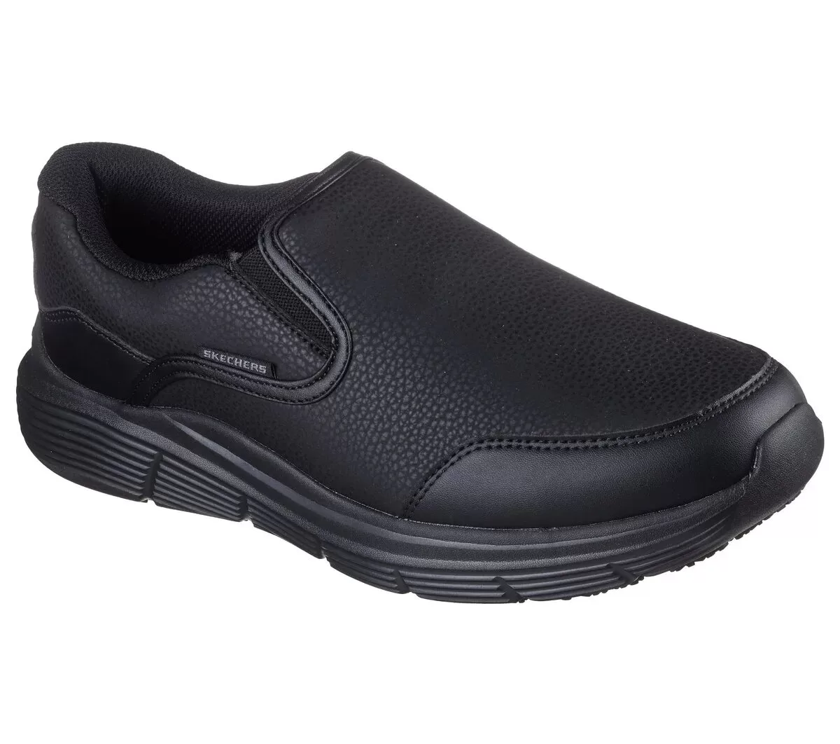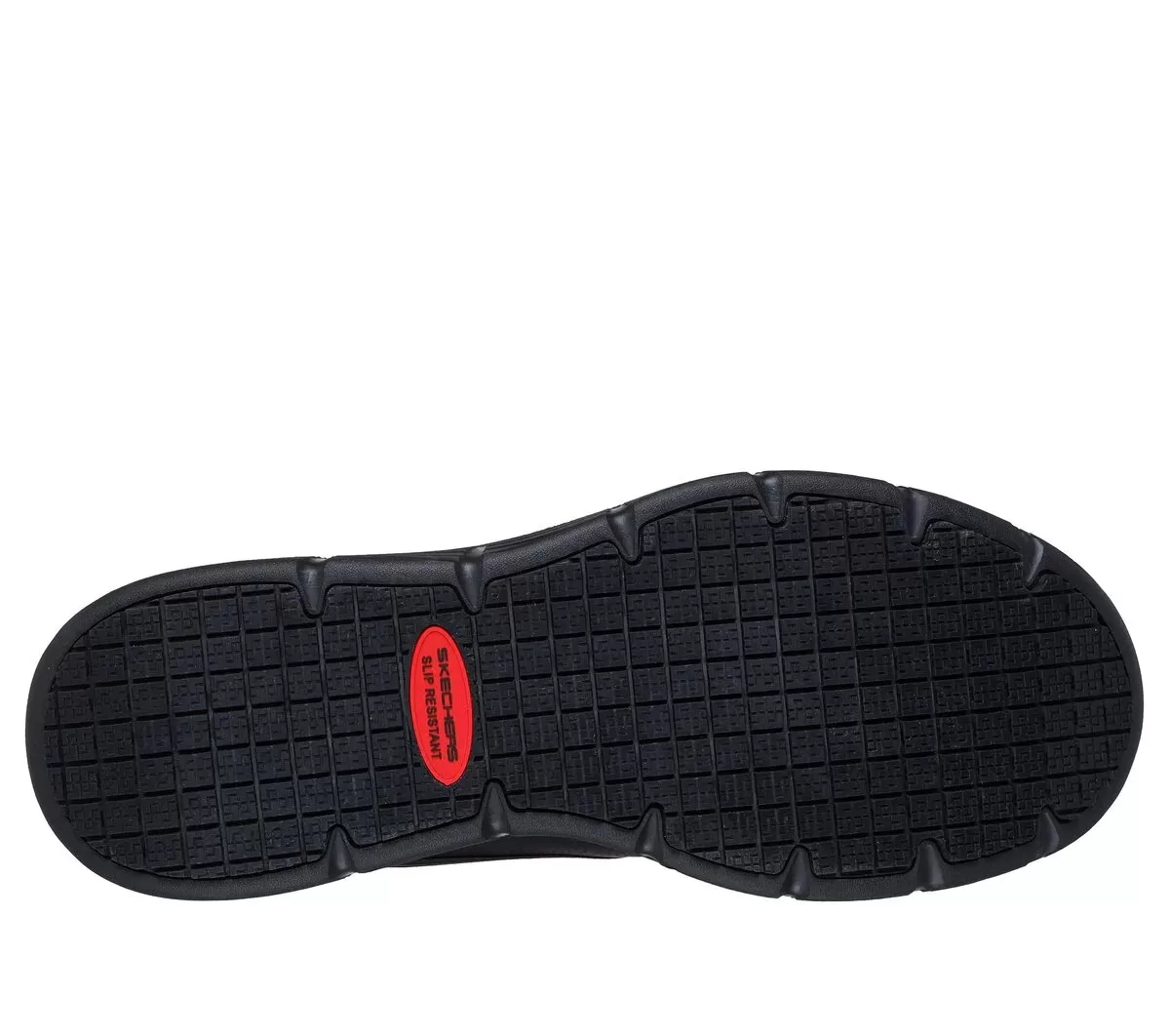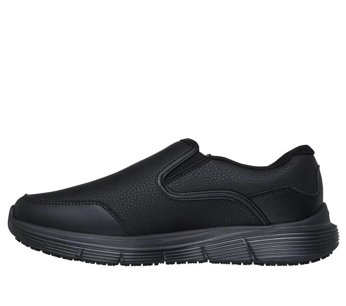 Tag på din vagt uden bekymringer om dine fødder iført Skechers Work™: Corart. Dette snørebåndsløse arbejdsdesign har en tekstureret overdel i imiteret læder med dobbelte gore-paneler for nem brug, en godt polstret mellemsål, skridsikker træk-ydersål og en polstret Skechers Memory Foam™-indlægssål.