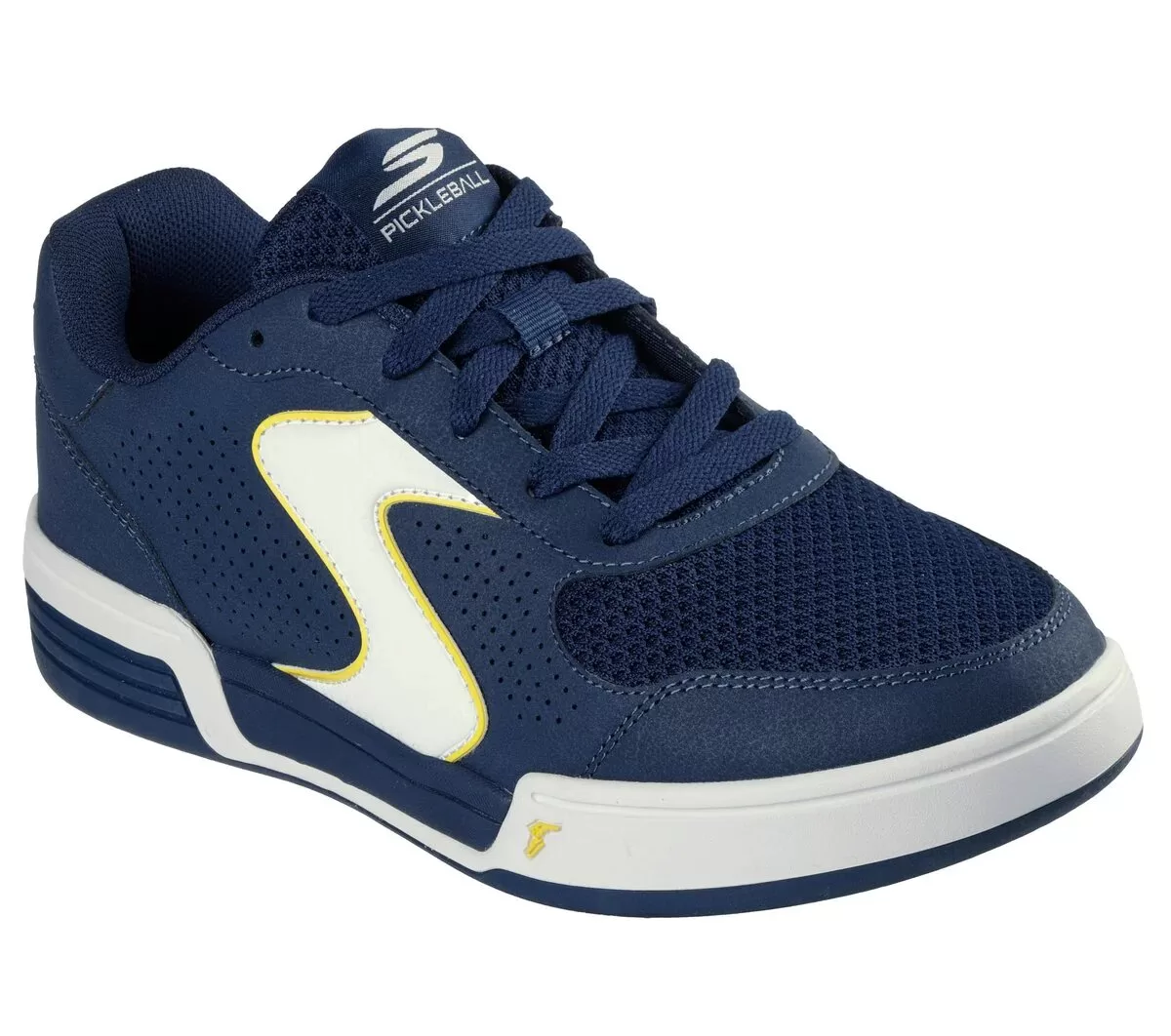 Løft dit spil med maksimal komfort iført Skechers Viper Court Classic. Dette performance-banedesign har en perforeret læder- og mesh-overdel med et kvart ‘S’-logo, en let Move Foam™-indlægssål plus en Goodyear® Rubber Performance-ydersål, der er bygget til øget holdbarhed og kontrol på banens overflade.