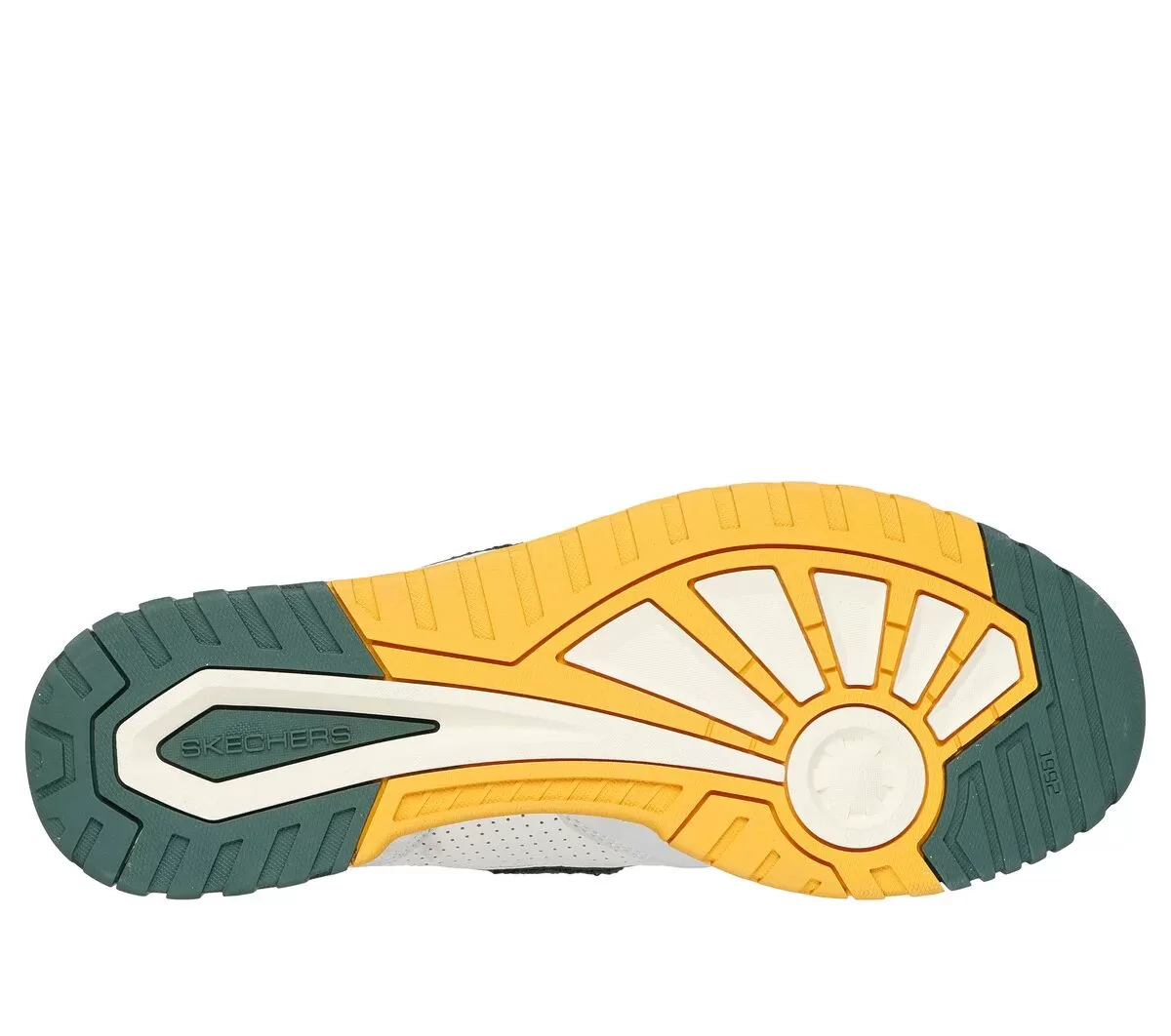 Gå gennem tiden i throwback-stil og klassisk komfort iført Skechers S-1992. Denne retro-inspirerede snørebånd har en overdel i læder, svineruskind og mesh med en chenille-logo-detalje og en polstret Skechers Air-Cooled Memory Foam® indersål.