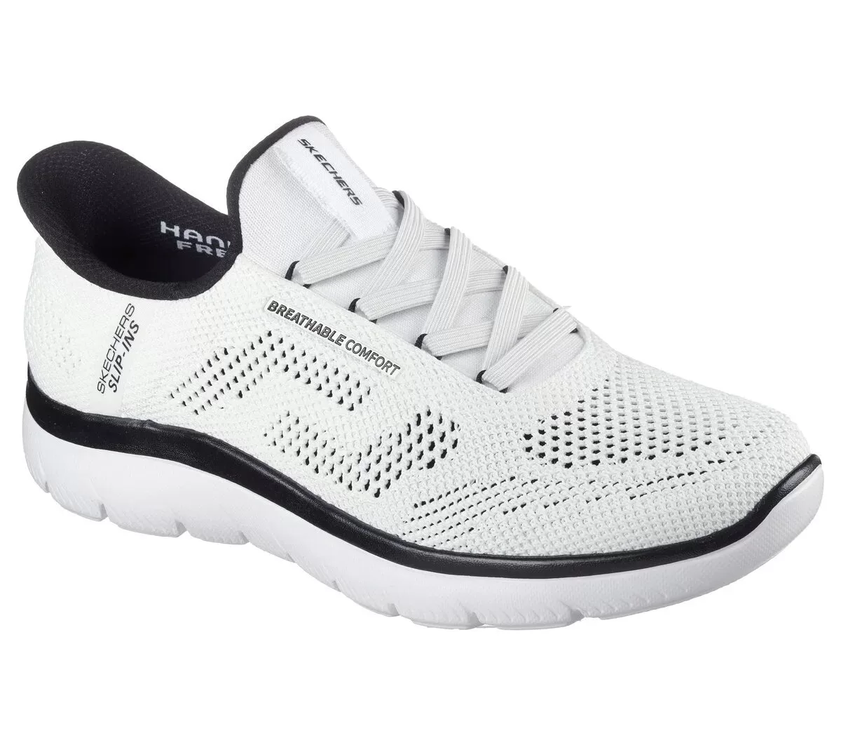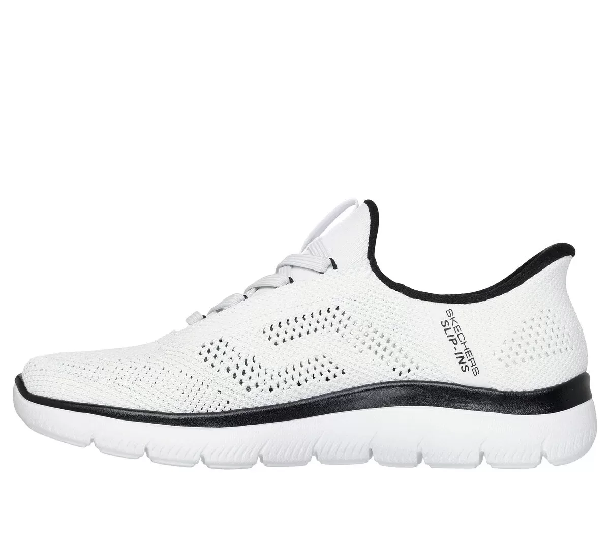 Gå ind i let-båren komfort med Skechers Hands Free Slip-ins®: Summits – Perfo. Designet med vores Exclusive Heel Pillow™, denne veganske stil har et unikt Skechers Slip-ins®-støbt hælpanel, en overdel i mesh med faste snørebånd og en polstret Skechers Air-Cooled Memory Foam®-indlægssål.
