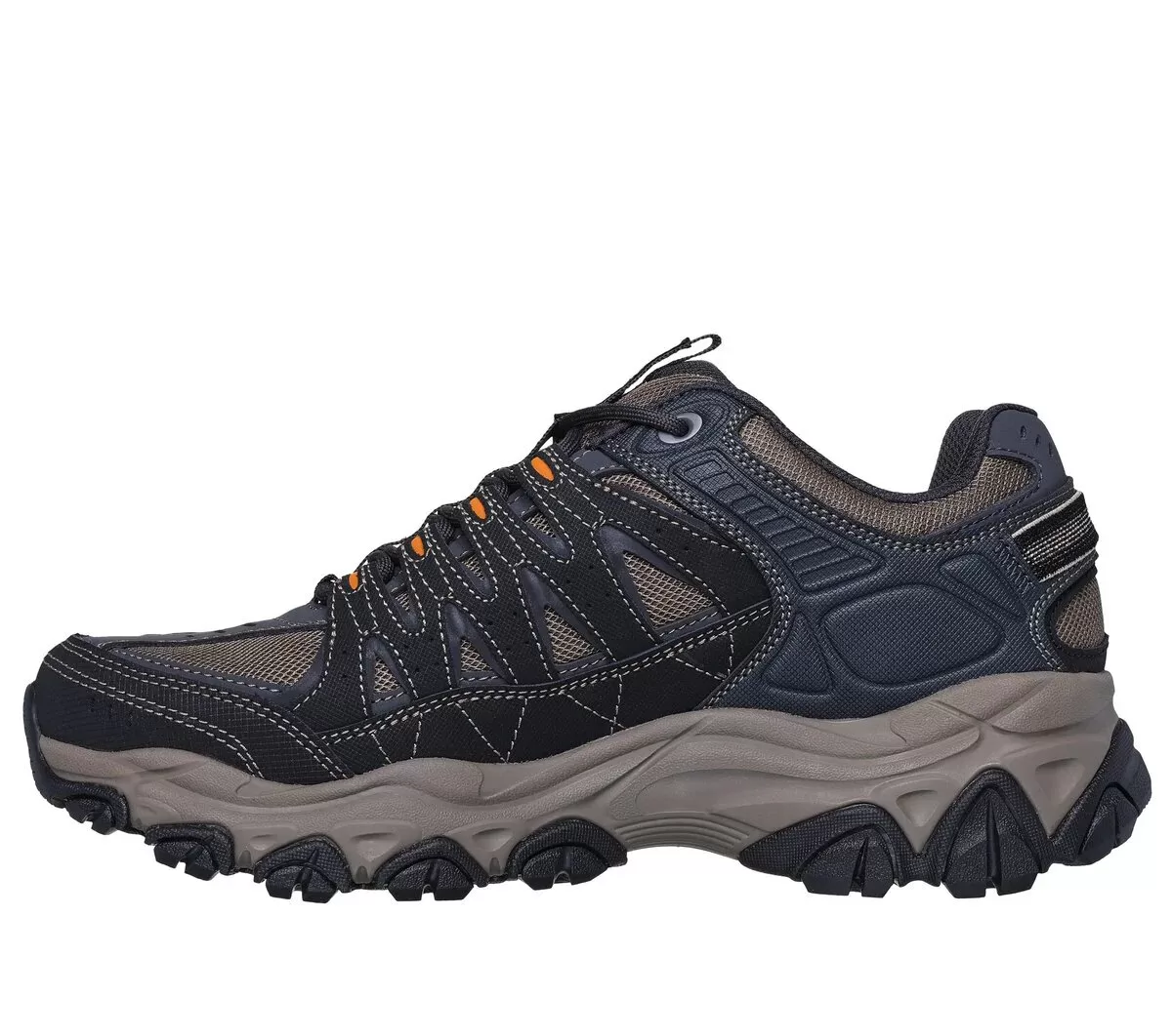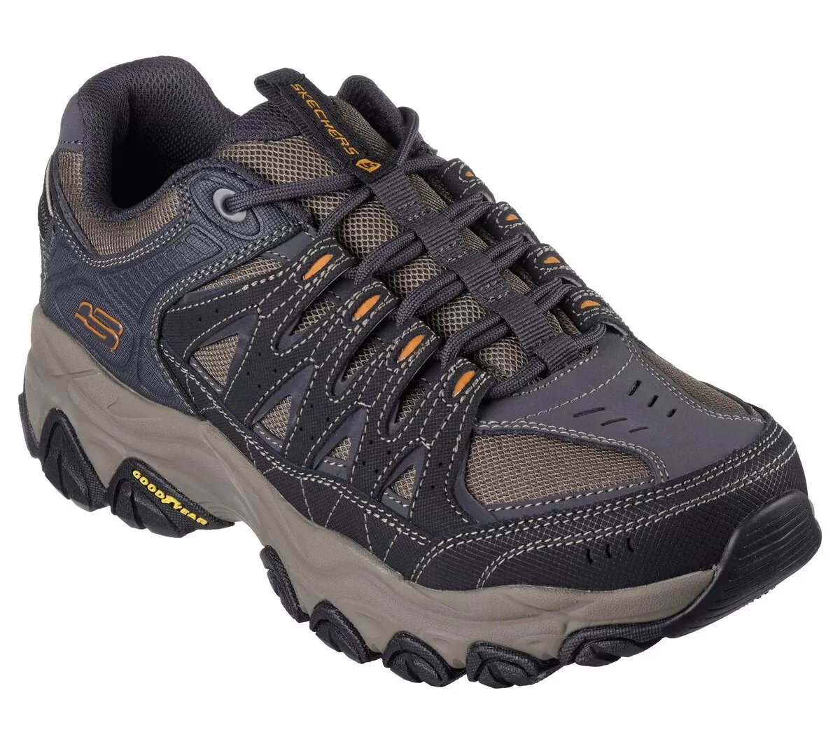 Udforsk vildt terræn i komfort med Skechers After Burn M.Fit 2.0. Dette udendørs stidesign med snørebånd har en overdel i læder, syntetisk og mesh med en polstret Skechers Memory Foam™ indersål og Goodyear® Rubber Ydersål.